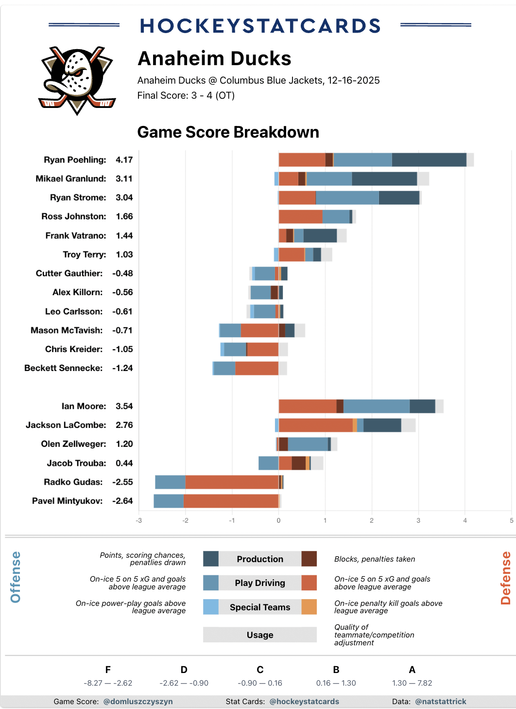 [HockeyStatCards] 2025-12-16 GameScore Impact Card vs CBJ
