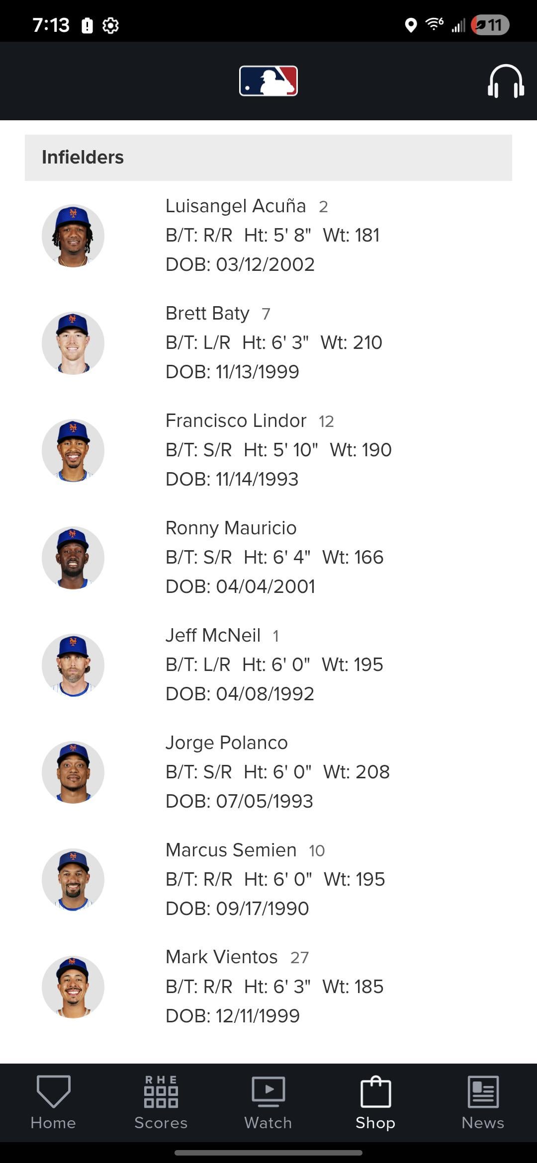 You need 5: DH, 1B, 2B, 3B, and SS. There are 8 here. Lindor, Baty, Semien, and Polanco are locks. Mauricio can stay in AAA, so that’s one gone. You need someone to play 1B and you need a bench, so probably two more of these guys should stay. I have no faith in Acuña as a hitter, so he’s the one I’d trade over McNeil and Vientos, but at that point it just depends on what you can get.