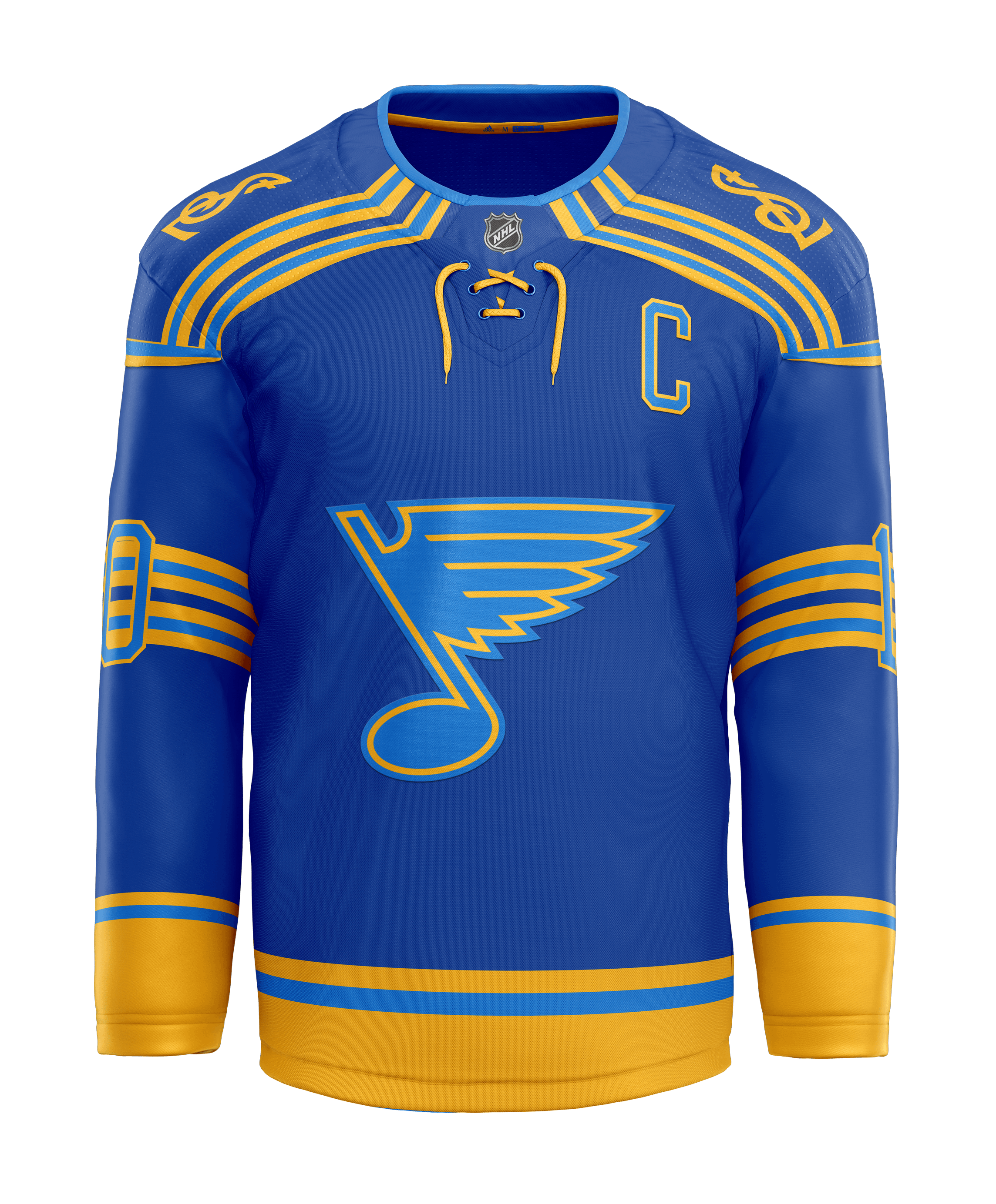 The stripes are way too busy, and I don’t think different shades of blue for the jersey and the logo works.