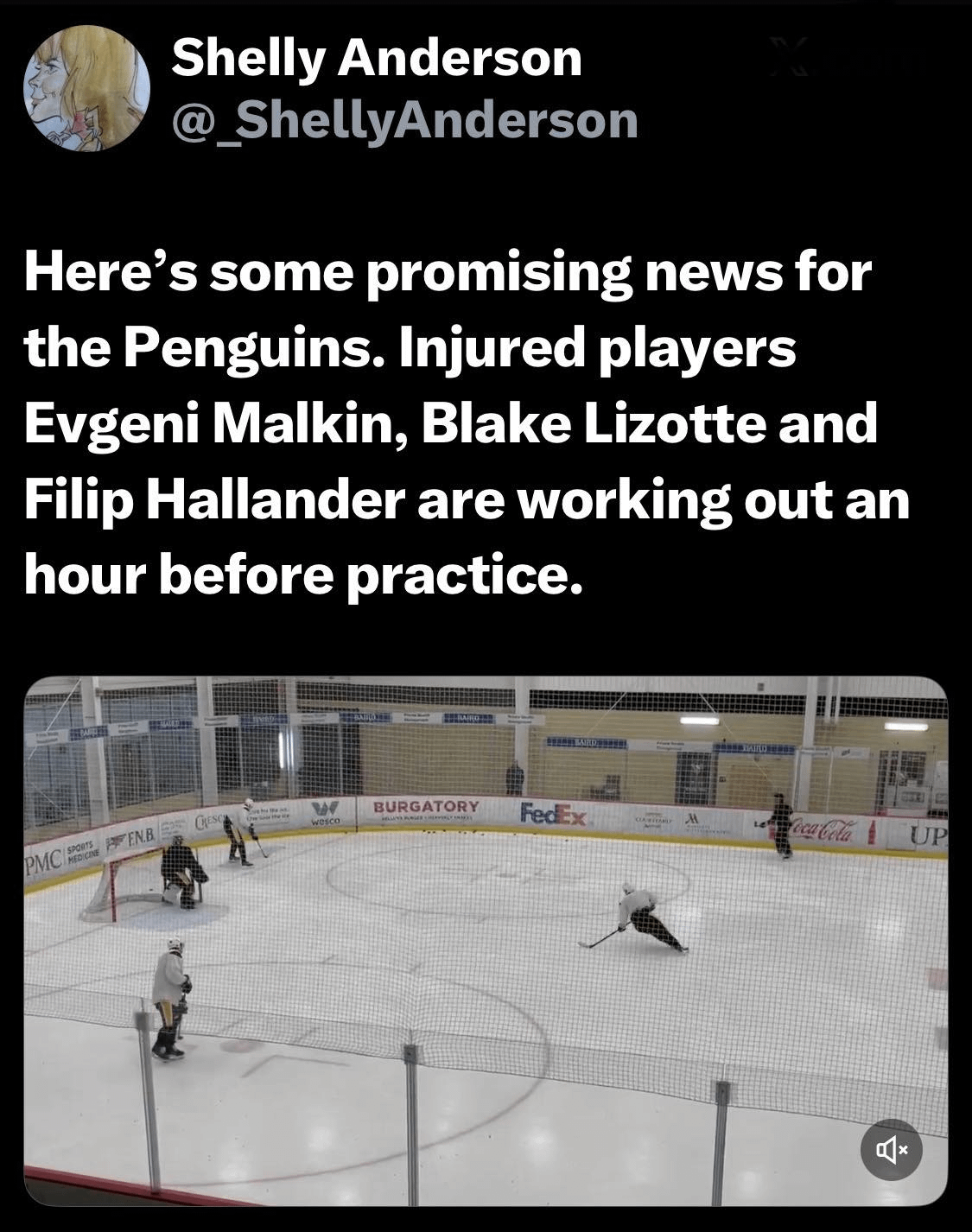 That isn’t promising news! Practicing WITH the team is promising news. Taking a group skate an hour before everyone is still rehab.