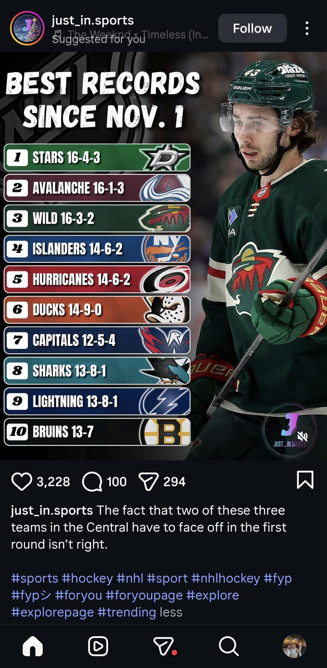 1. ‘The Wild have gone 16-3-2 since November 1st and are 3rd overall in the league!’