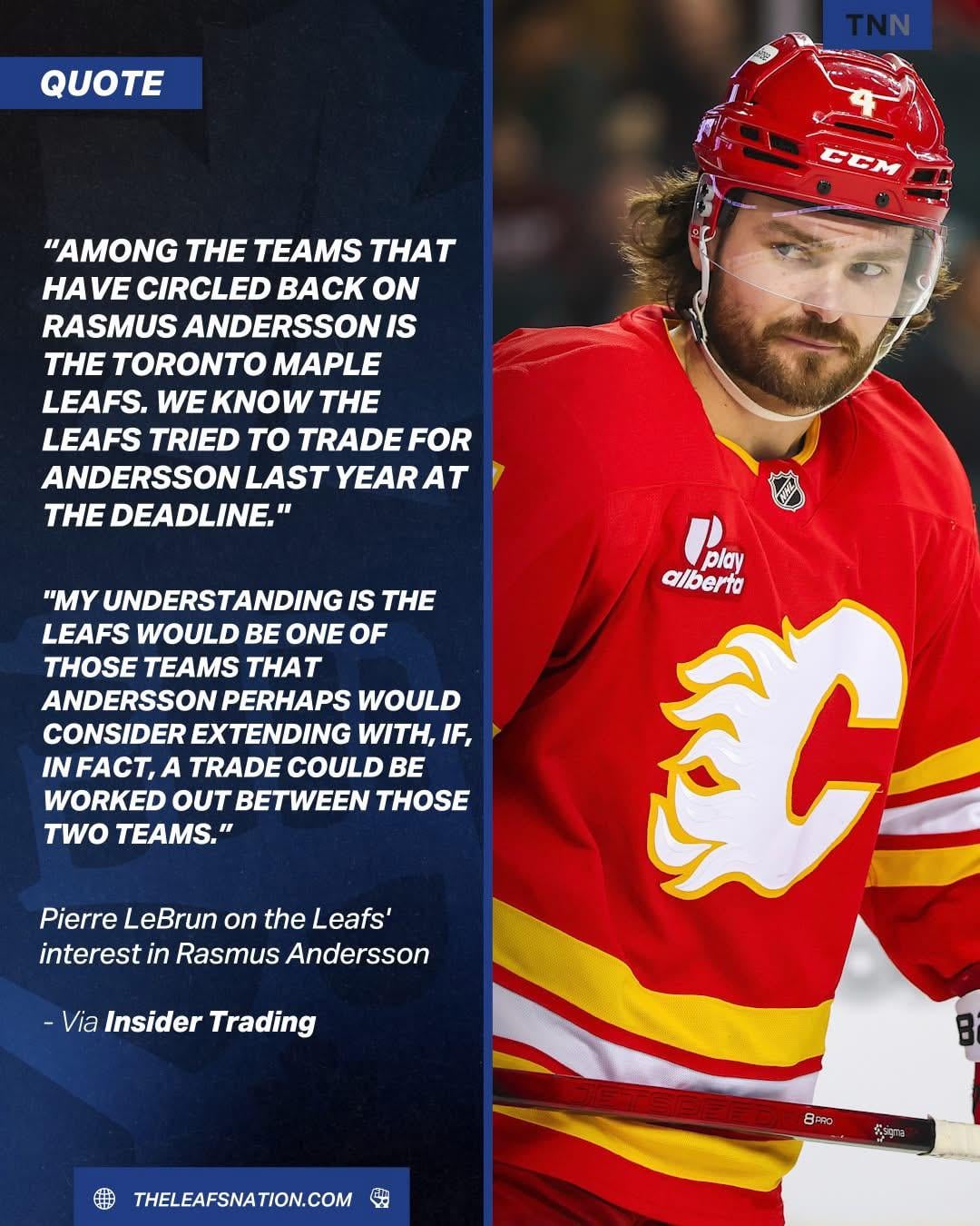 Leafs continue to explore a potential trade for Rasmus Andersson