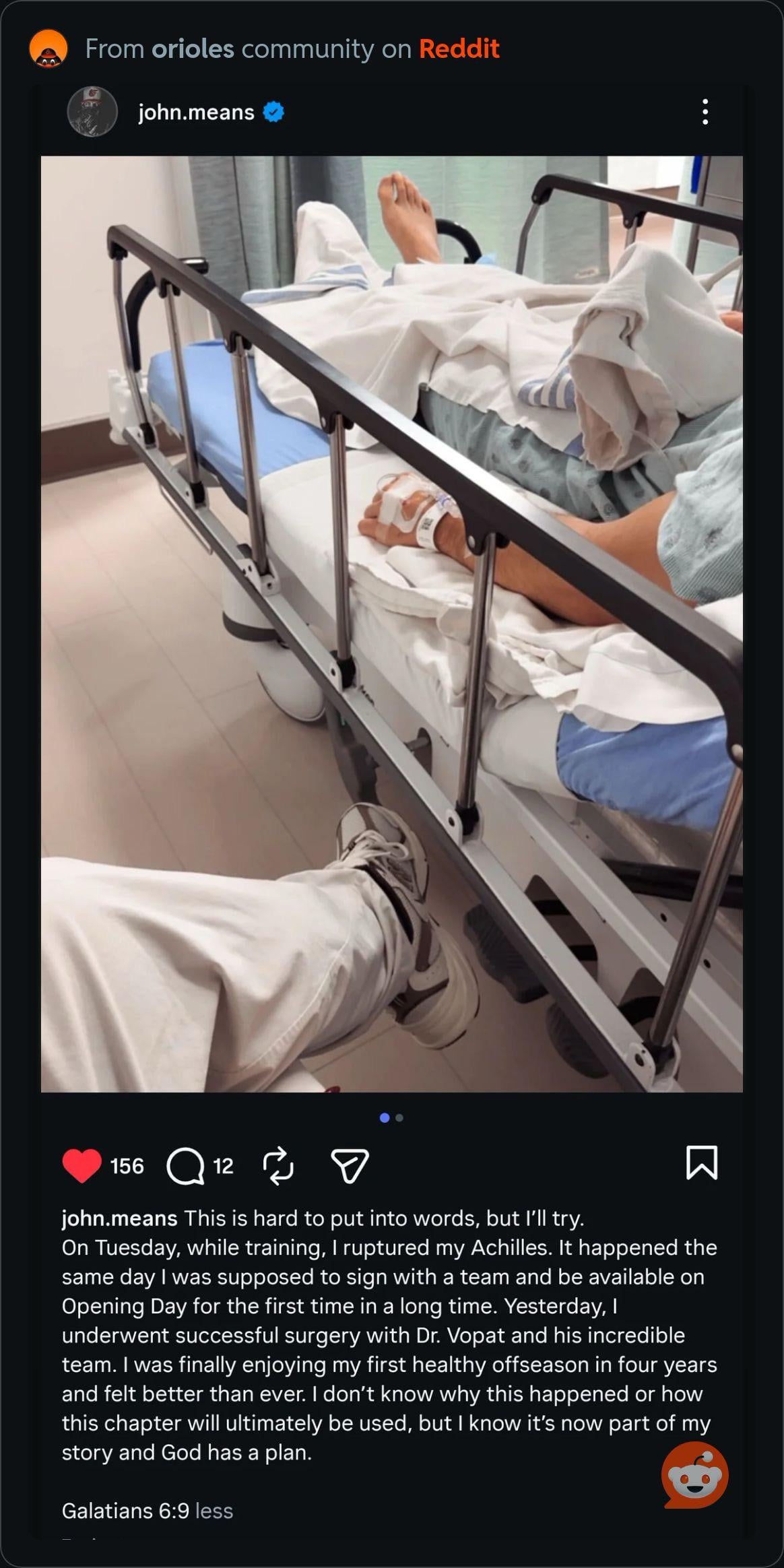 Holy fuck, have the baseball Gods had it out for this guy or what the past several years? Jesus, man. I just want John Means to stay healthy and kill shit once again.