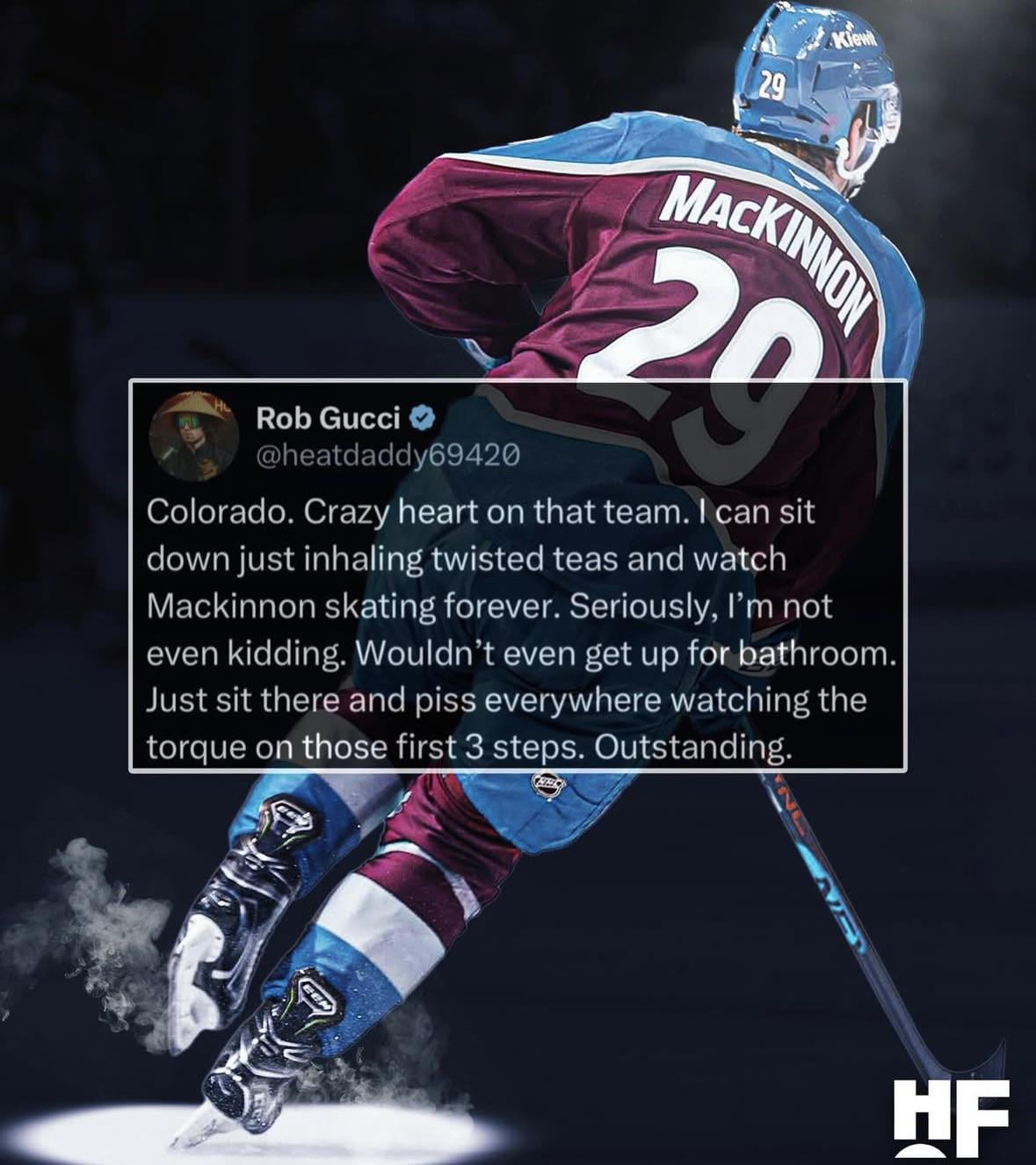 One of us. 11 comments Babe wake up, new Mack Dawg copypasta just dropped ~~Public bus~~ Private piss ~~floor~~ couch nasty For those of us not on social media, is this just some random guy and his observation? Or is he someone moderately in the know about the Avs? “Skates like he’s pissed at the ice and it owes him money.”  You have to appreciate the evolution of English prose. Shakespeare walked so this man could piss his couch. I’d not like to sit in front of this man at the games Had to google twisted tea. Sounds…interesting. This is a thing in the U.S? “Gooble gooble one of us!” https://preview.redd.it/vilzni43p68g1.jpeg?width=425&format=pjpg&auto=webp&s=ccbff650150771336e1ba141fb6d8618c0e52a7b Boom. They should sell these at the Avs store Who is heatdaddy69420?? Leave a ReplyYou must be logged in to post a comment.