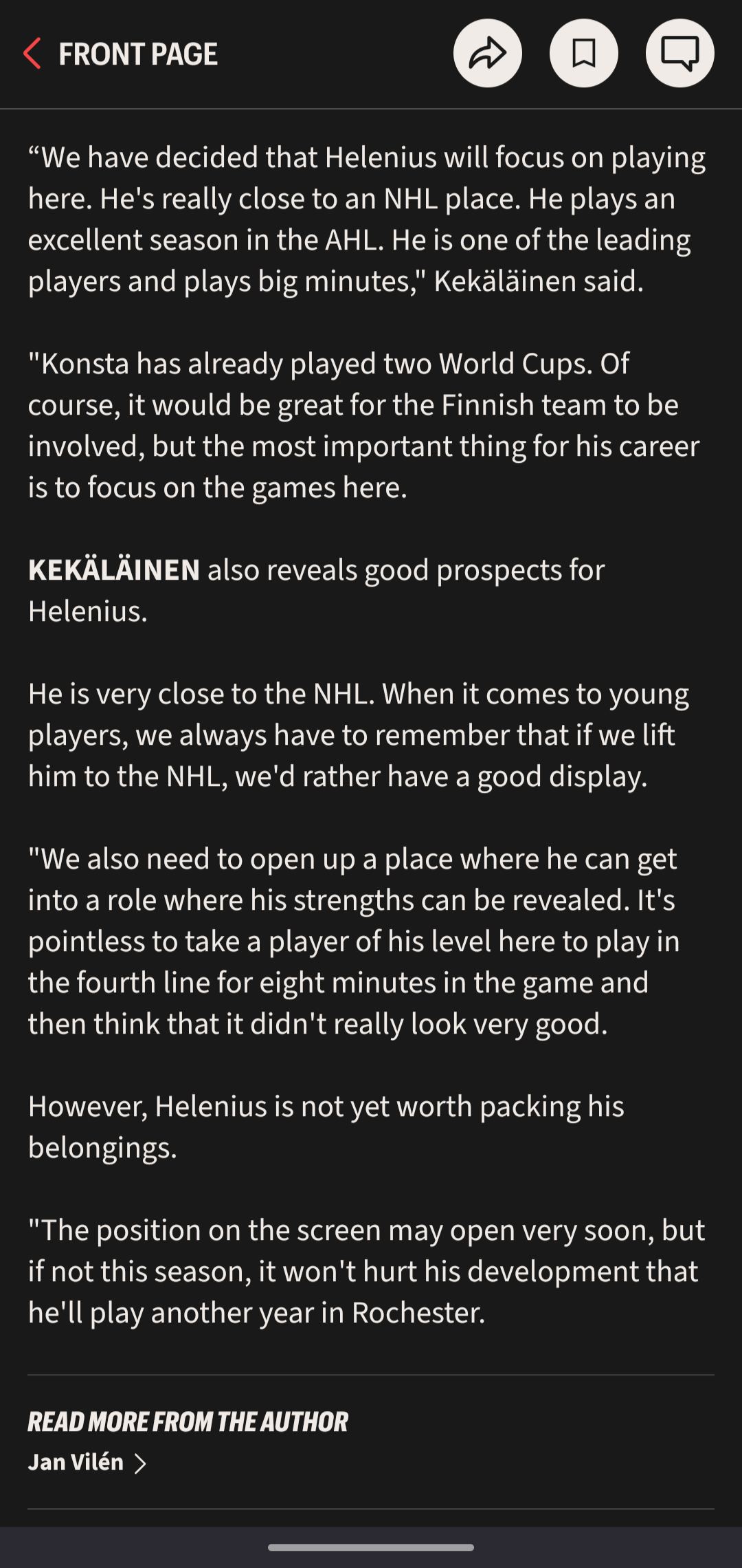 One of the Sabres’ biggest issues throughout the drought is the inability to have young players assimilate into the league without being thrown into big roles. One of the best positions for a club to be in is to have prospects breaking down doors to get into the league. Helenius is making a case, whether this year or next, that when he comes to Buffalo full time he’s here to stay.