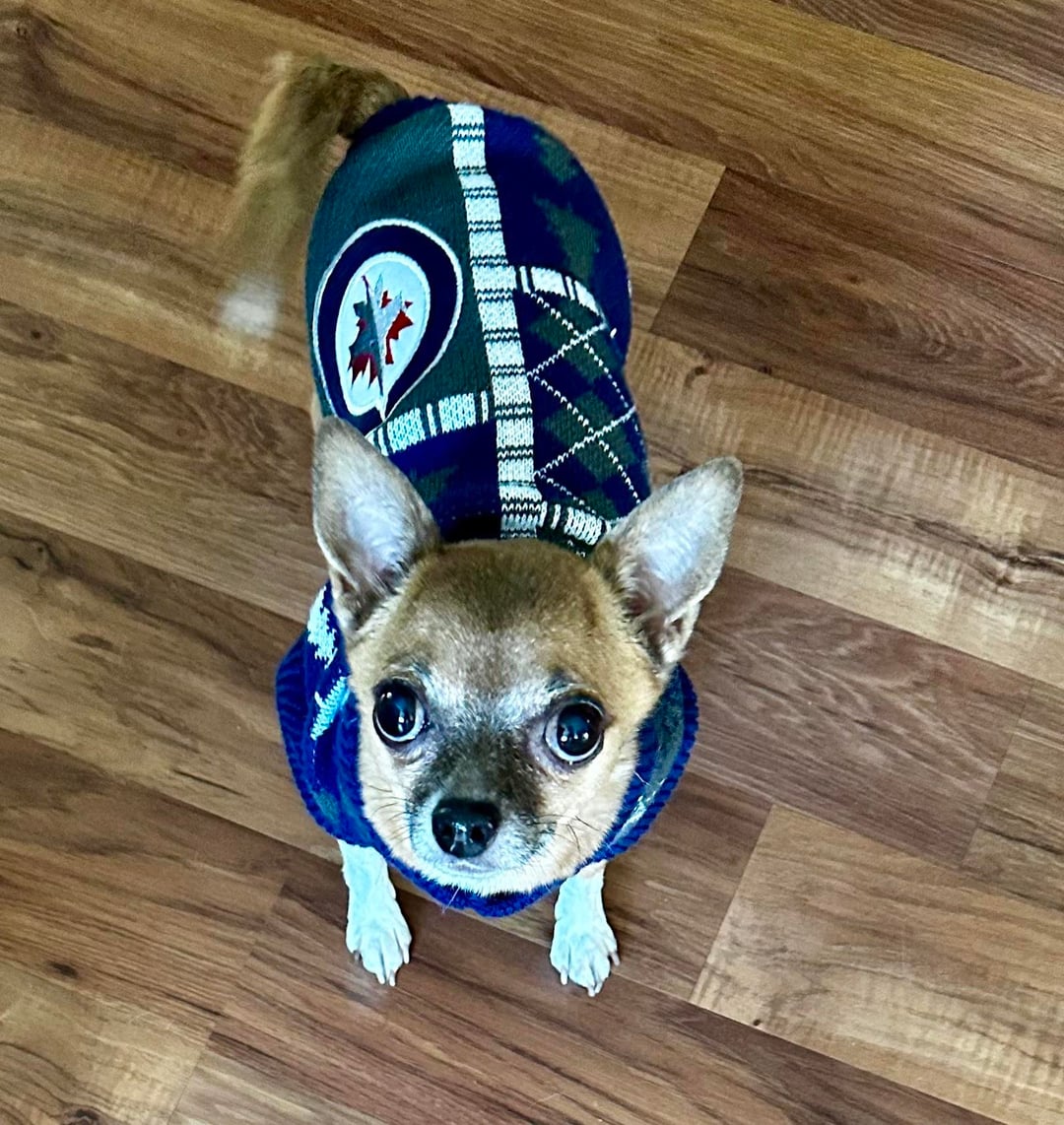 All 5 pound of her. 10 comments Omg she is absolutely precious 😊 What a cutie patootie ❤️ She has that boopable l’il nose too lol😅 bbq with a little garlic, black bean sauce- delicious! If they win tonight this is our new luck pup! Where did you get that sweater? And what size is it? Tell her not to watch tonight….. Her little heart won’t be able to take it lol Lol my cat weighs 3 times as much as her. I got my dog a jersey and called him Bark Scheifele Woof! Looks a liittle like DeMelo is this the new Winnipig? Leave a ReplyYou must be logged in to post a comment.