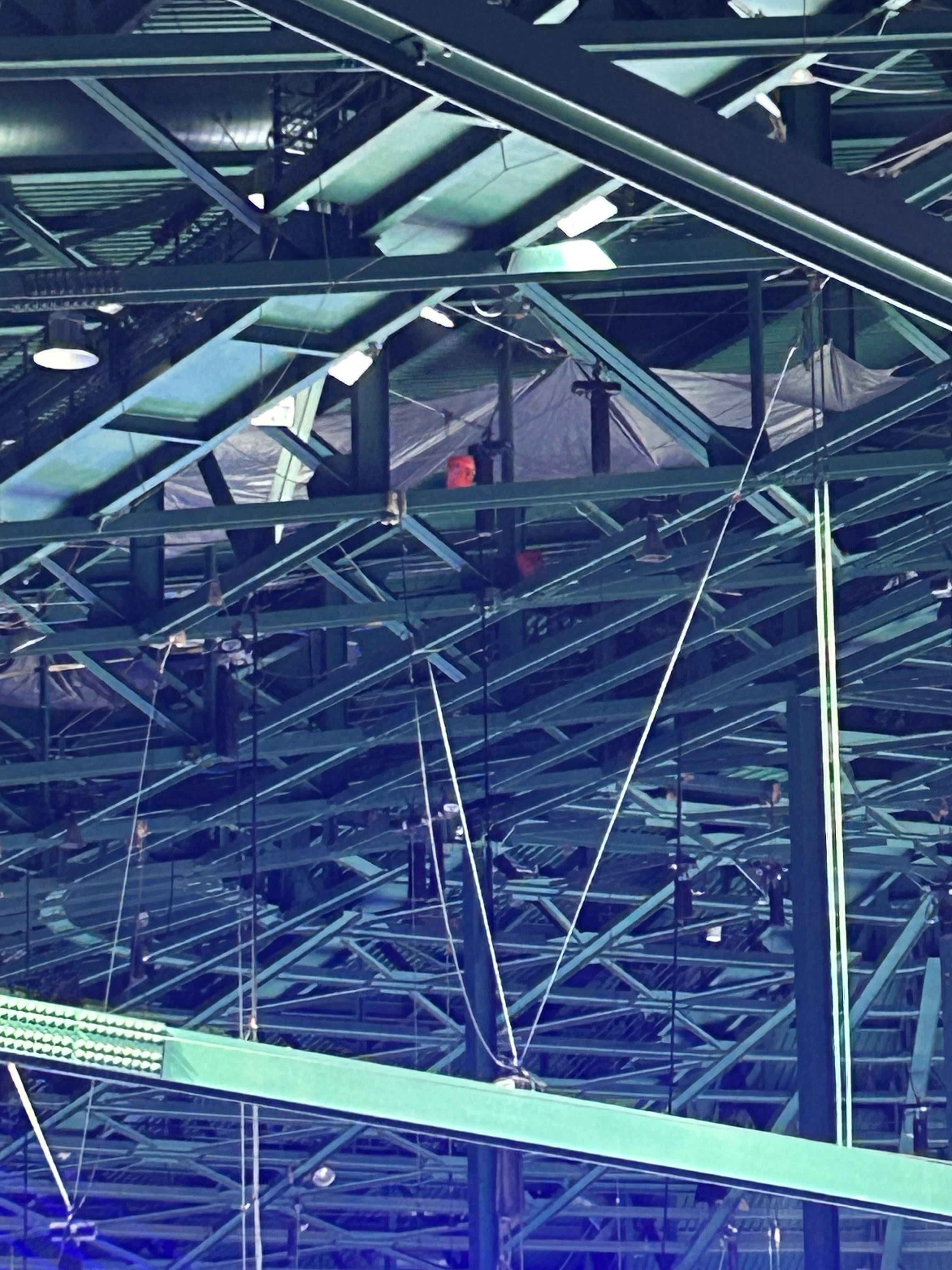 Tarps up as well, to channel the leaks into the buckets.