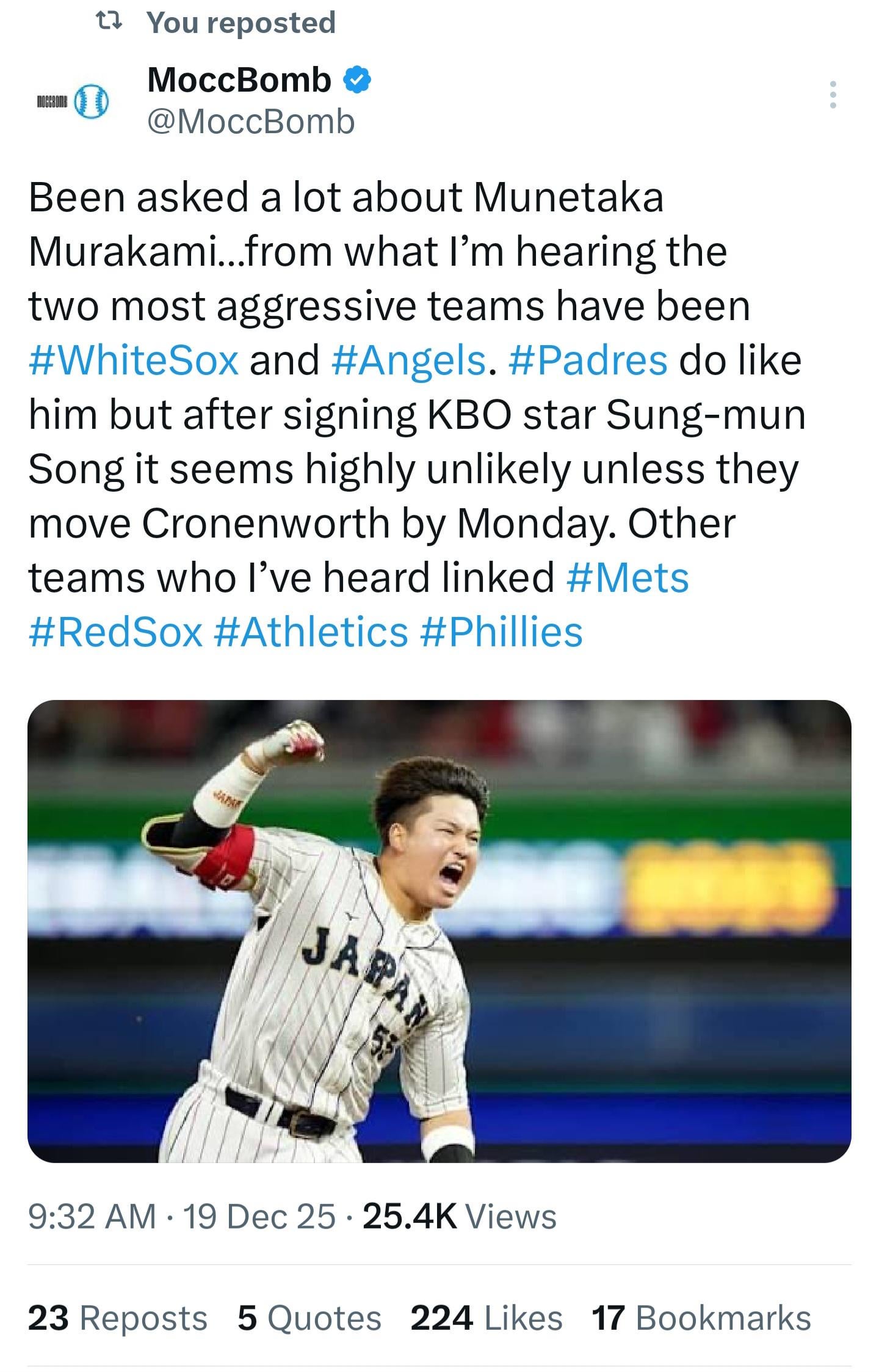 I was hoping we’d get anyone among the Korean 3B, Murakami, or Okamoto. Now it’s down to 2, fingers crossed