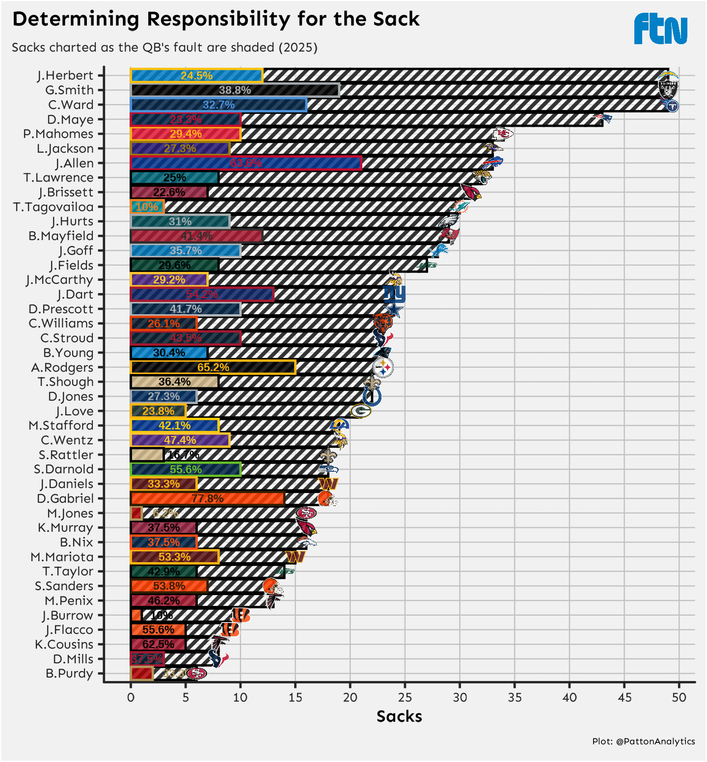 I think we all knew the O Line was abysmal and having Alt/Slater out only compounds things but this is severe malpractice. I am so tired of watching Bozeman literally let a guy through the line to go straight for Herbo. This chart just puts in perspective how bad the issue is.