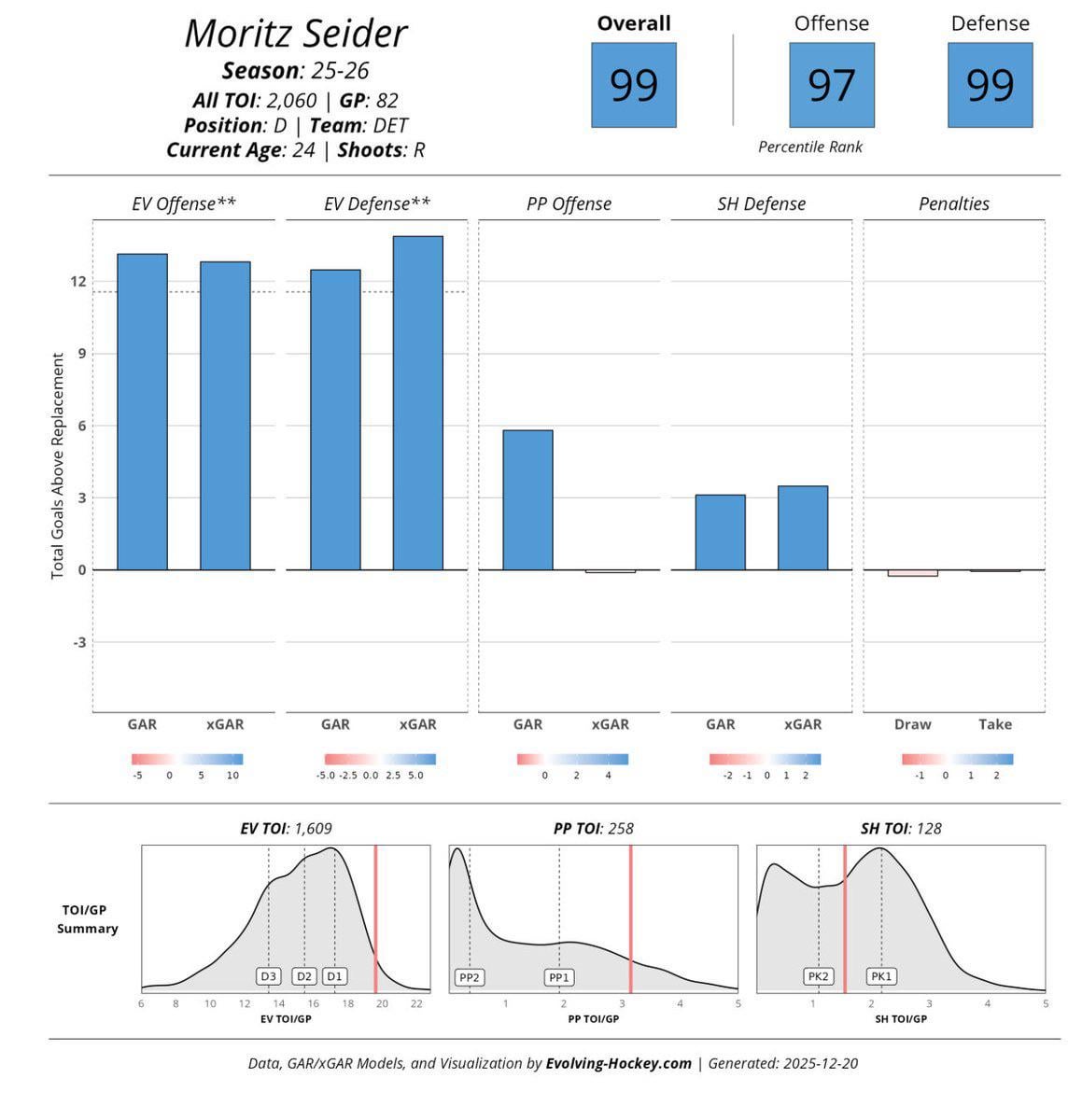Seider has it all. But won’t win the Art Ross for D-men with Makar and Hughes in the leauge.
