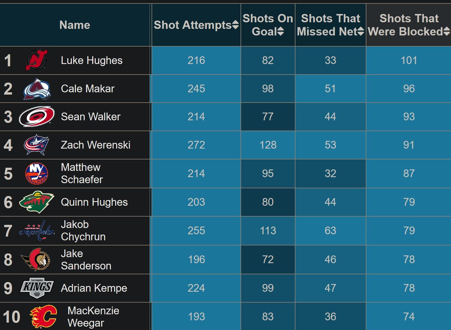 Luke Hughes Leads the NHL in Shot Attempts That Were Blocked