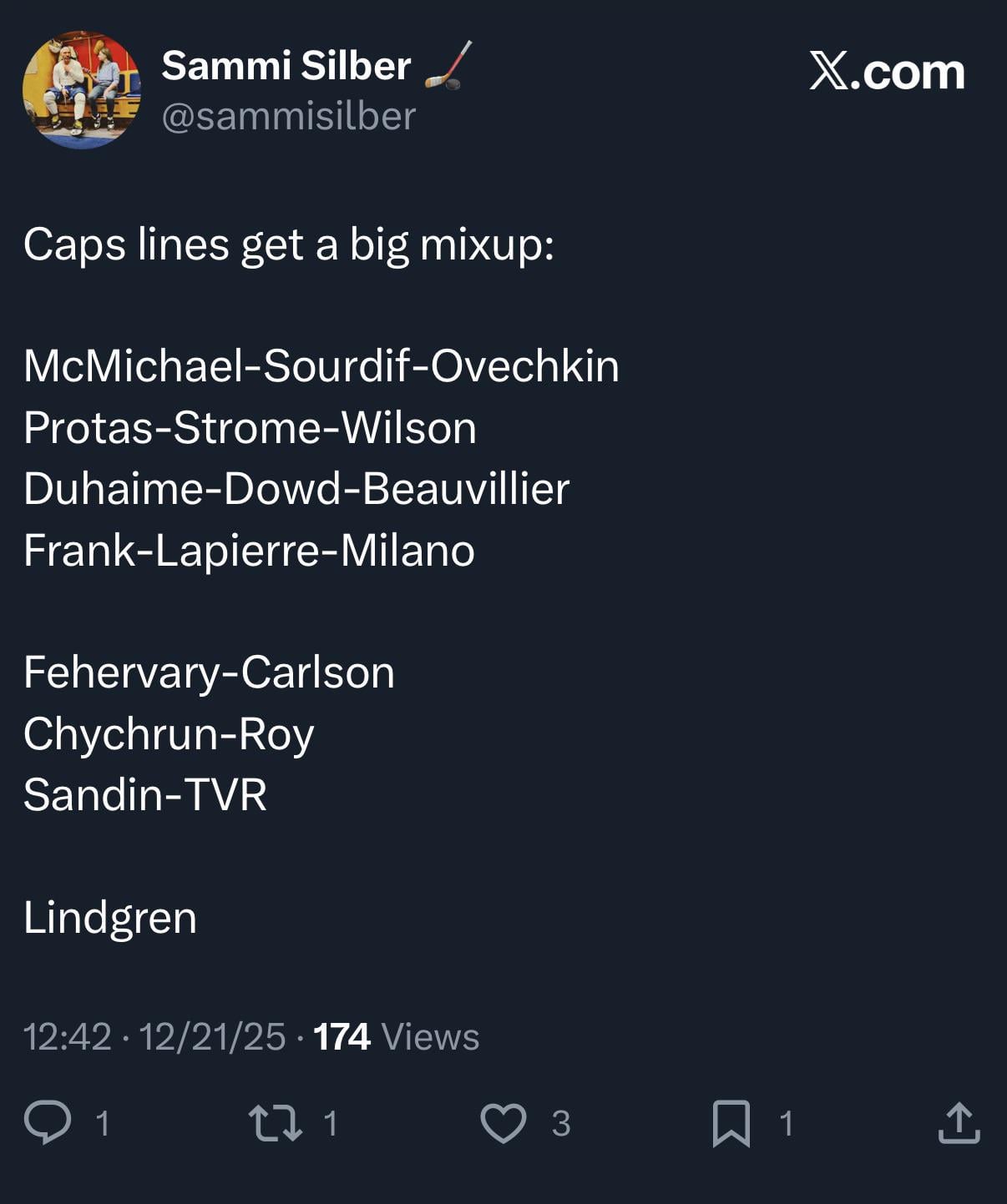 I think the first line is going to suffer the same issues as it has since Ovi started looking his age again… poor defense and lack of sustained pressure, and I don’t think a rookie Sourdif is going to solve that issue when Strome couldn’t.