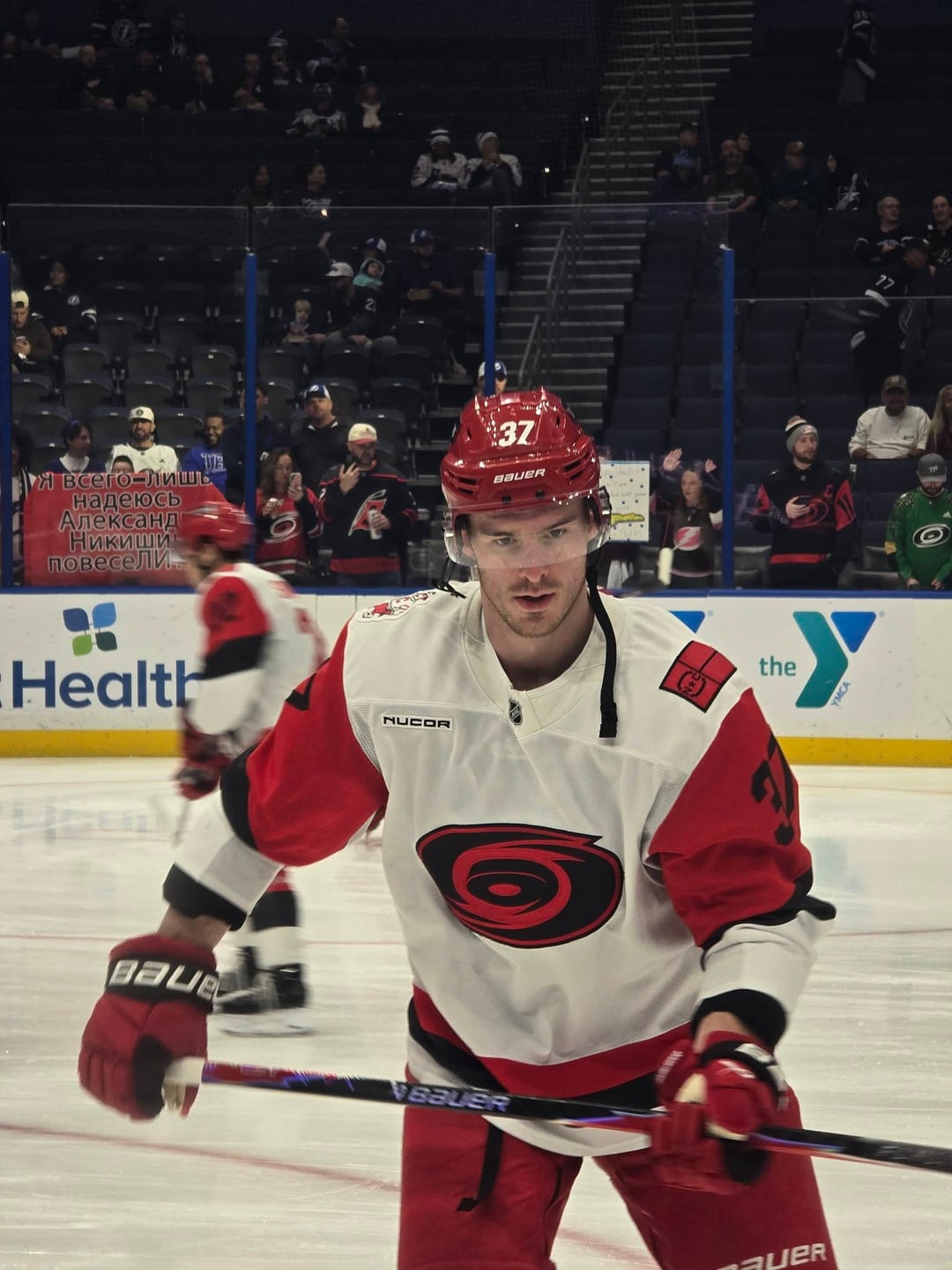 This was my first in person Canes game in 20 years (I am 30). I was down for warmups with a sign, but did not get a puck or anything. Blake gave a puck to the older lady to my left and someone to my right.