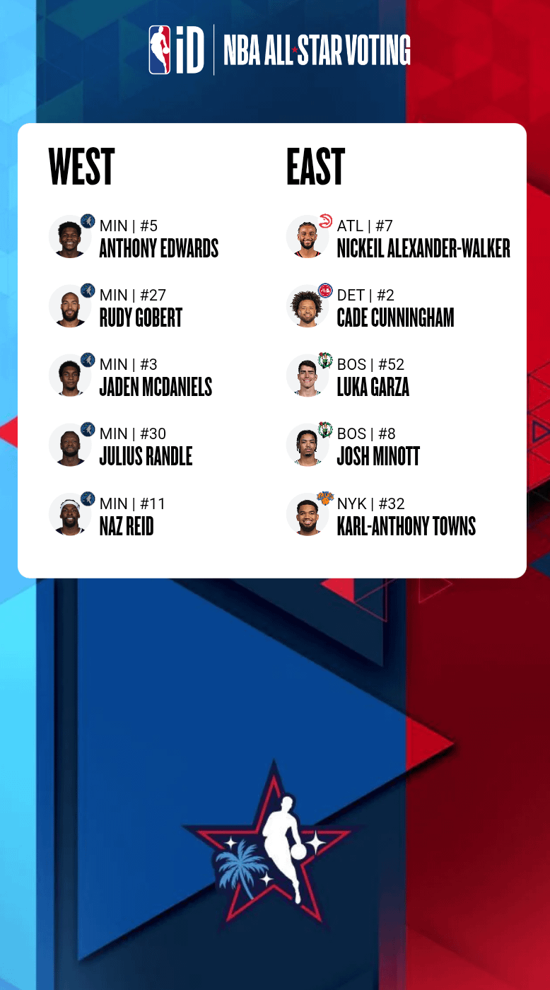 Vote link 3 comments  I’m going with Wiggins over Cunningham to complete the East Wolves. Im putting bones in over Julius. Move Naz to the 4 Leave a ReplyYou must be logged in to post a comment.