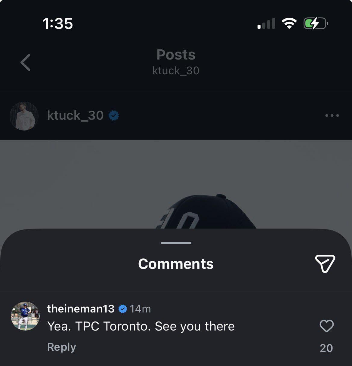 Tyler Heineman comment on Kyle Tucker’s newest Instagram post