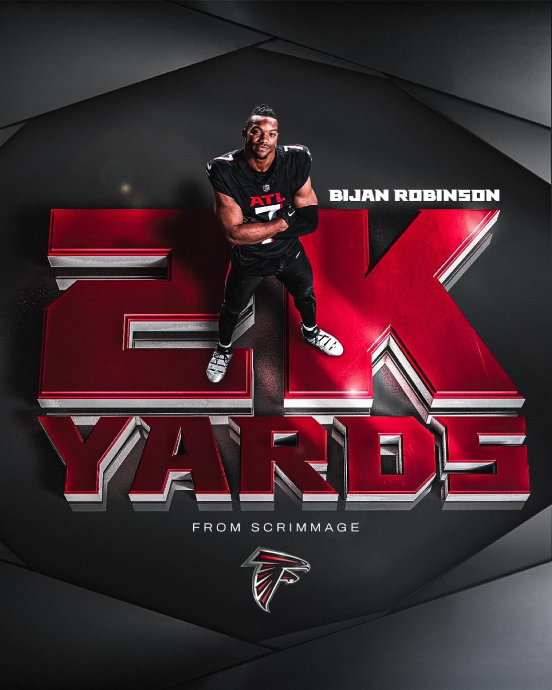 Today Bijan Robinson became the third player in Falcons history to eclipse 2,000 scrimmage yards in a season.