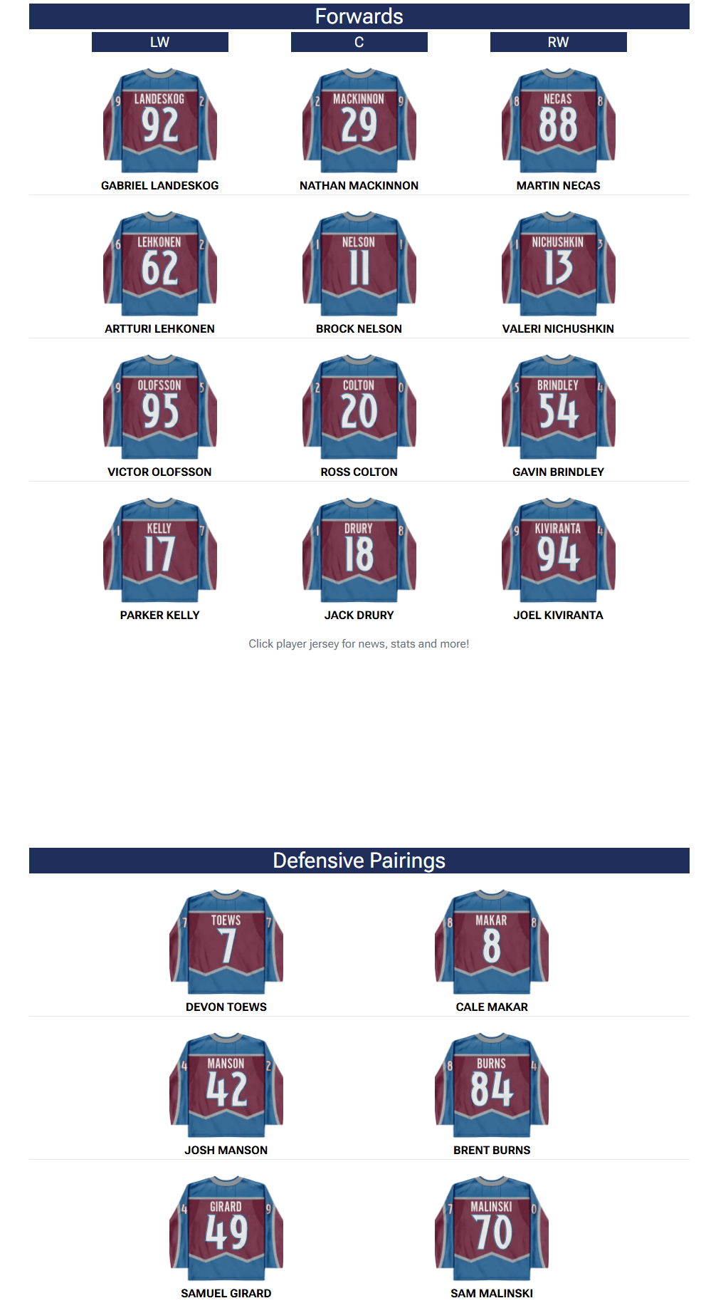 What a team π 7 comments Donβt forget THE LUMBER YARD Landeskog on the first line. What a beautiful sight  π₯Ή very. So who gets the axe when LOC comes back? π±π±π± Envy Leave a ReplyYou must be logged in to post a comment.
