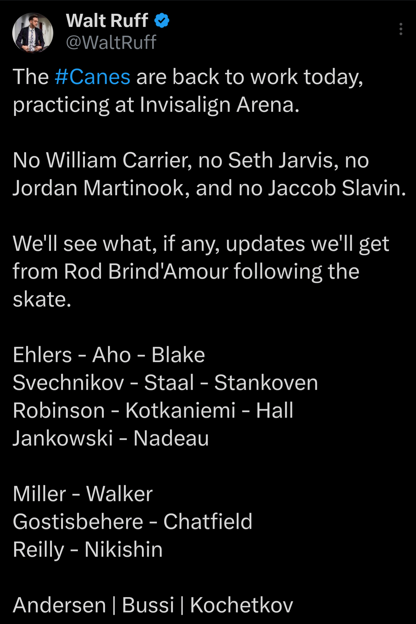 So no Slavin huh? Not so sure they were being honest about him missing the second game of the back to back as a preplanned thing only.