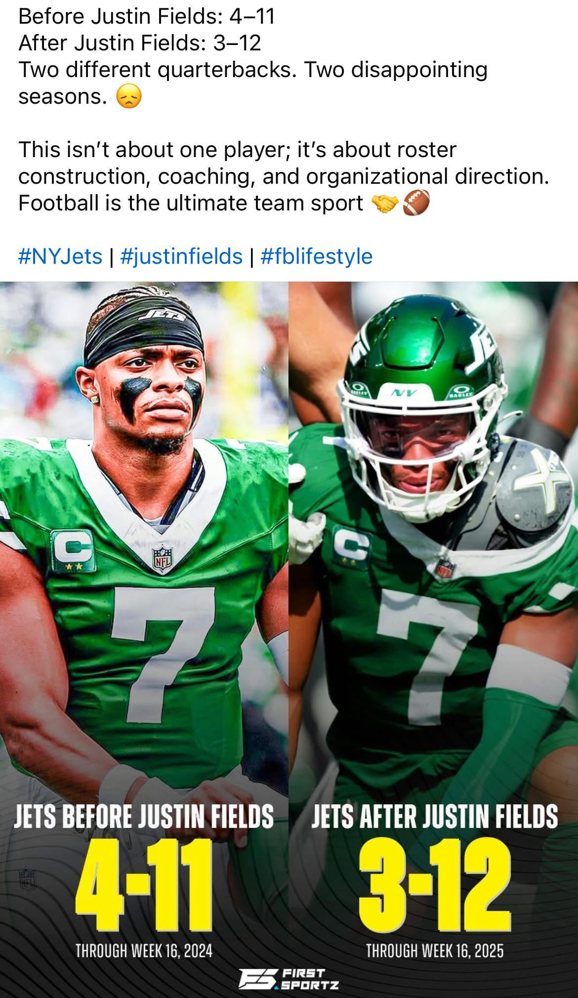 Justin Fields also hasn’t been the QB in the most recent losses. Justin Fields didn’t injure Garrett Wilson which also has hurt the offense with him out. You can only blame Justin Fields for what he’s done himself and you should blame Mougey for the roster.