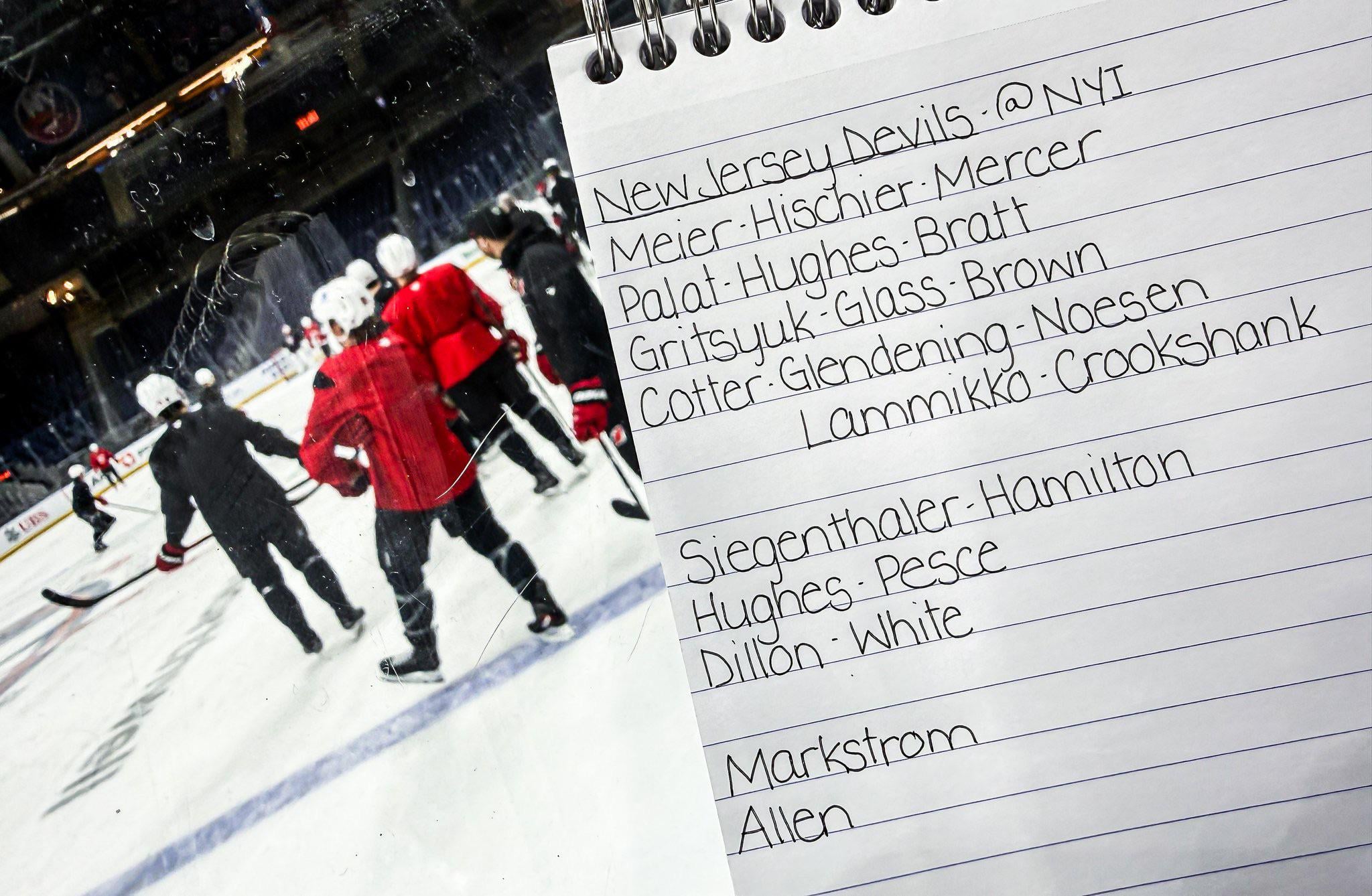 12/23 Morning Skate – Changes to forward lines. Defense stays the same. Markstrom in starter’s net. Mercer back with Hischier and Meier. Bratt and Palat back with Hughes. Gritsyuk back with Glass and Brown.