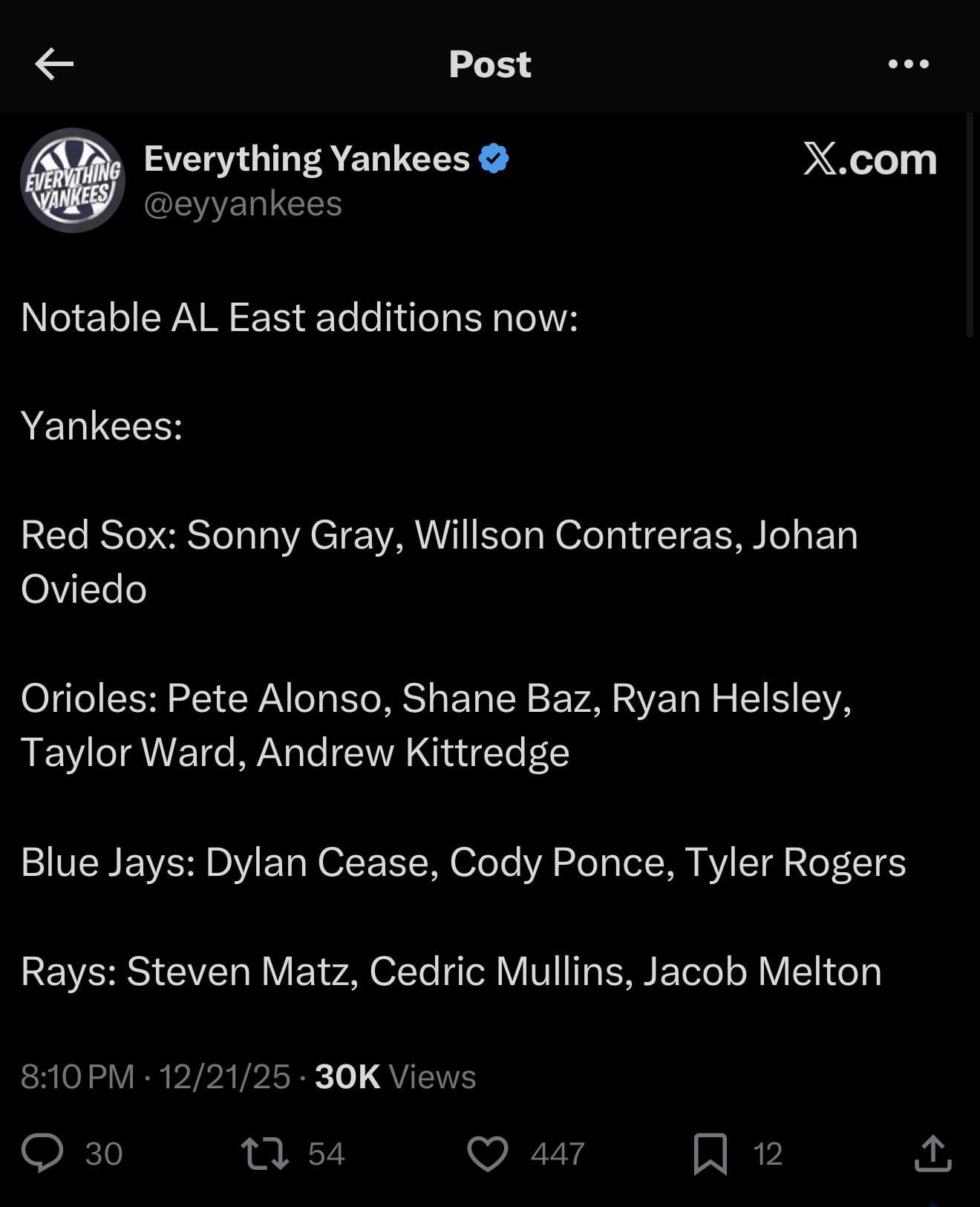 8. I don’t think the Yankees had as many needs as we do. They got Gerrit Cole coming back and Aaron Judge is still a force in the middle of that lineup. Anything for them is just gravy.