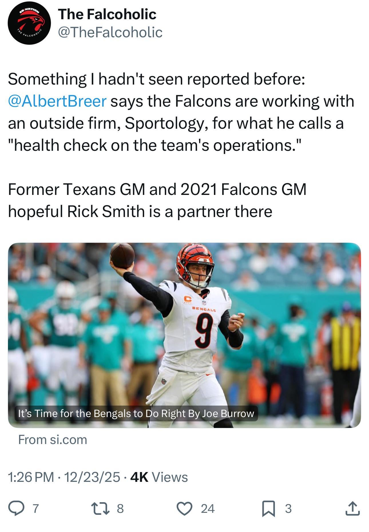Falcons bring in outside firm for an “overall health check on the team’s operations”