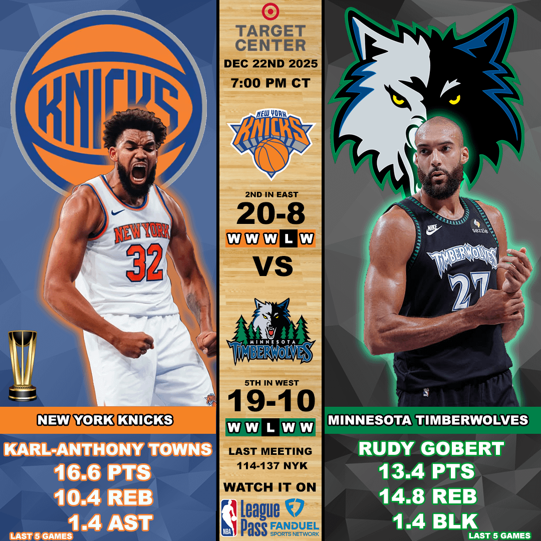 4. Surprising how the Wolves and Knicks practically have idential records. Knicks have a lot of injuries so hopefully we actually decide to show up in the 1st half, beat them properly and start getting ready for Denver.