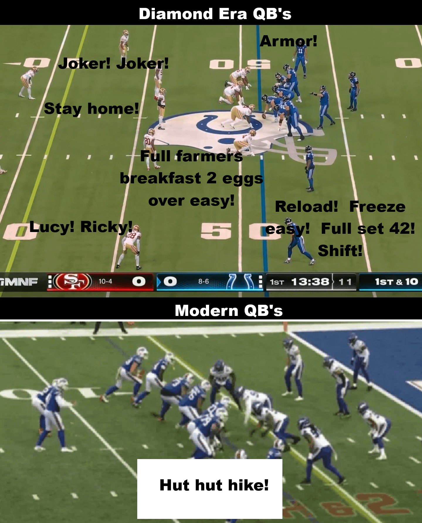 1. I was thinking the same thing last night! What QB drafted after like 2016 is actually making large changes at the line? It is so nice to walk the older command of the line adjustments.