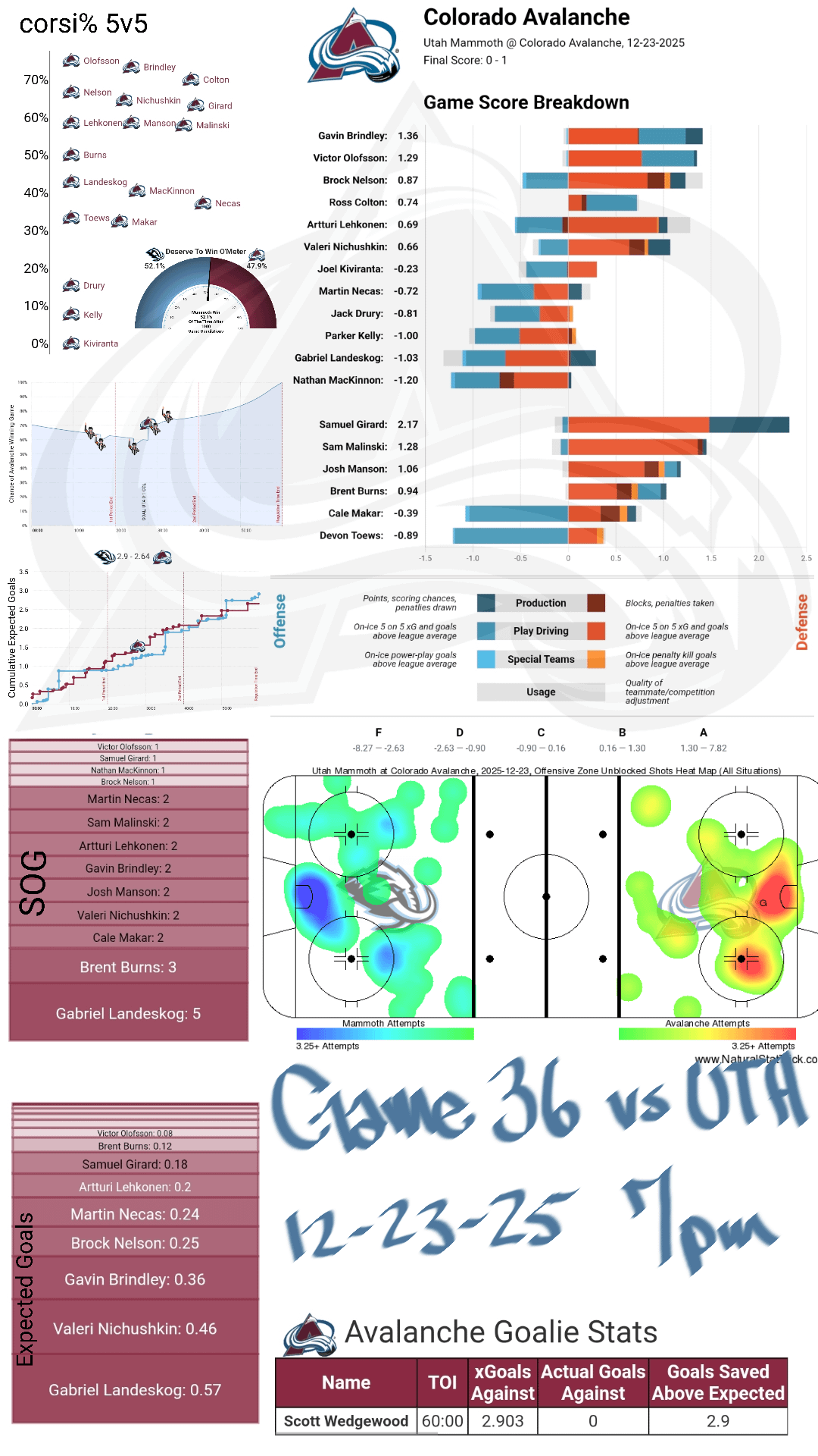 Not many games out there where MacKinnon, Makar, Toews, Necas, Landy finish negative, and still win.