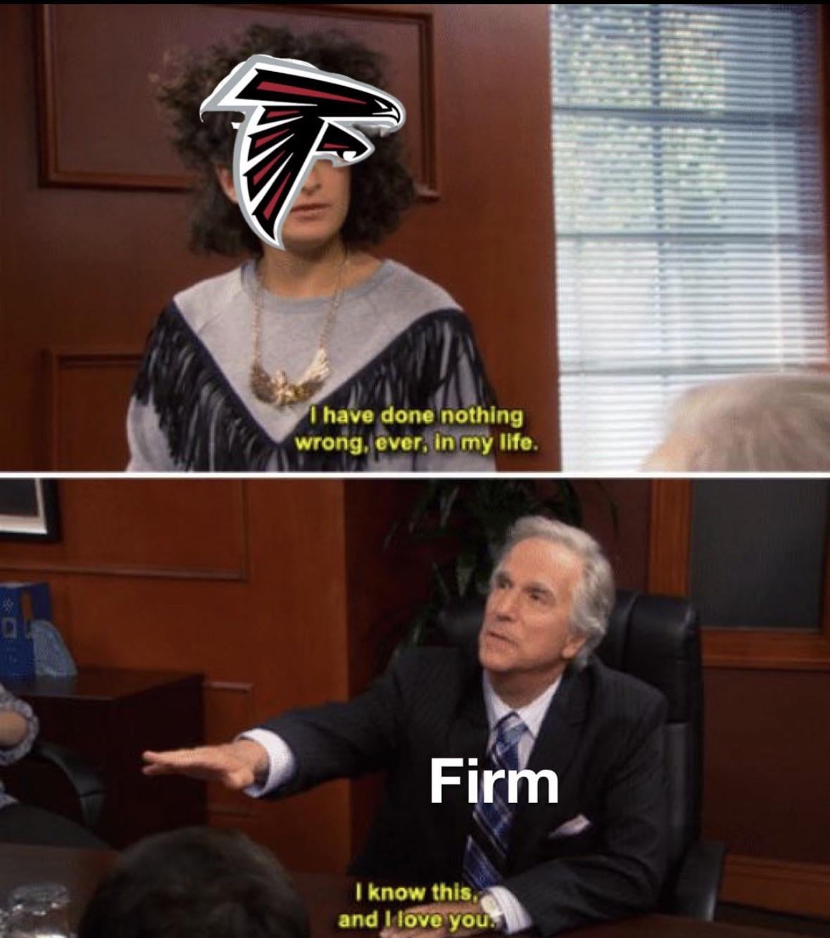 How the offseason firm evaluation is gonna go 4 comments No cap 🥲 Rich McKay to Arthur Blank It’s me. I am the firm. 🤝🏾 We investigated ourselves and found no wrong doing Leave a ReplyYou must be logged in to post a comment.