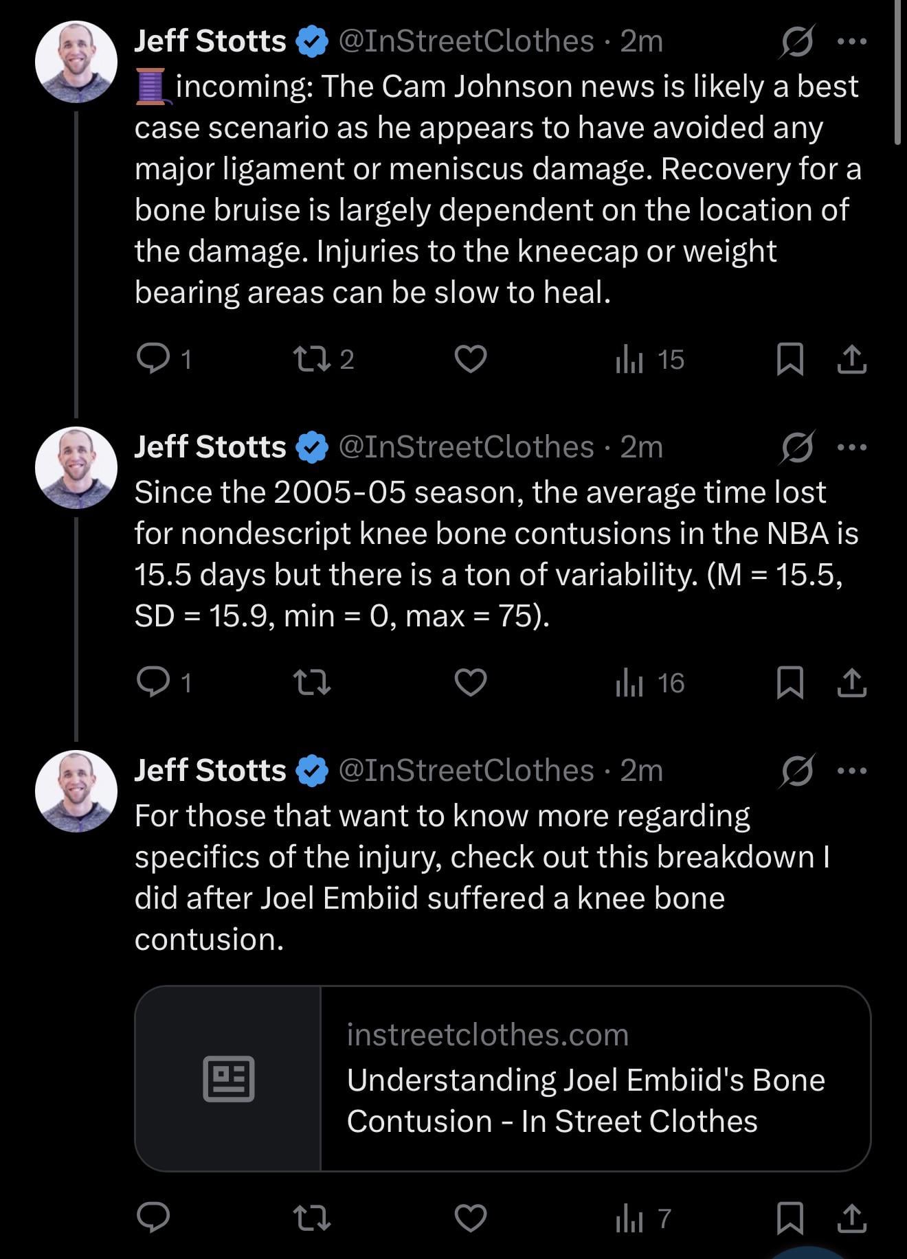 2. The worst case scenarios I’ve seen posted have been Robert Covington and Kendrick Nunn. Covington’s happened in December and ultimately required surgery and he missed the rest of the season. Nunn’s happened in preseason and actually resulted in missing the entire season.