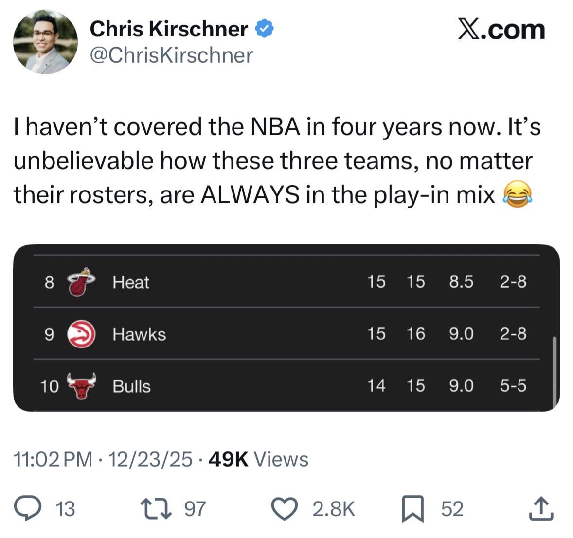 That means the bulls will eliminate the hawks? Hen heat take out the bulls