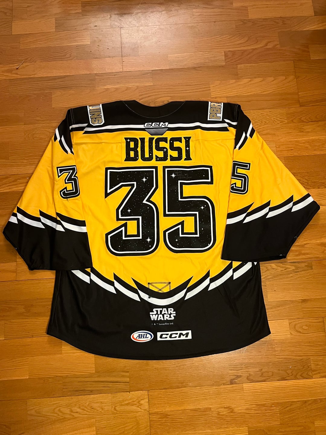Brandon Bussi game worn Star Wars “Pooh-bacca” Providence Bruins jersey