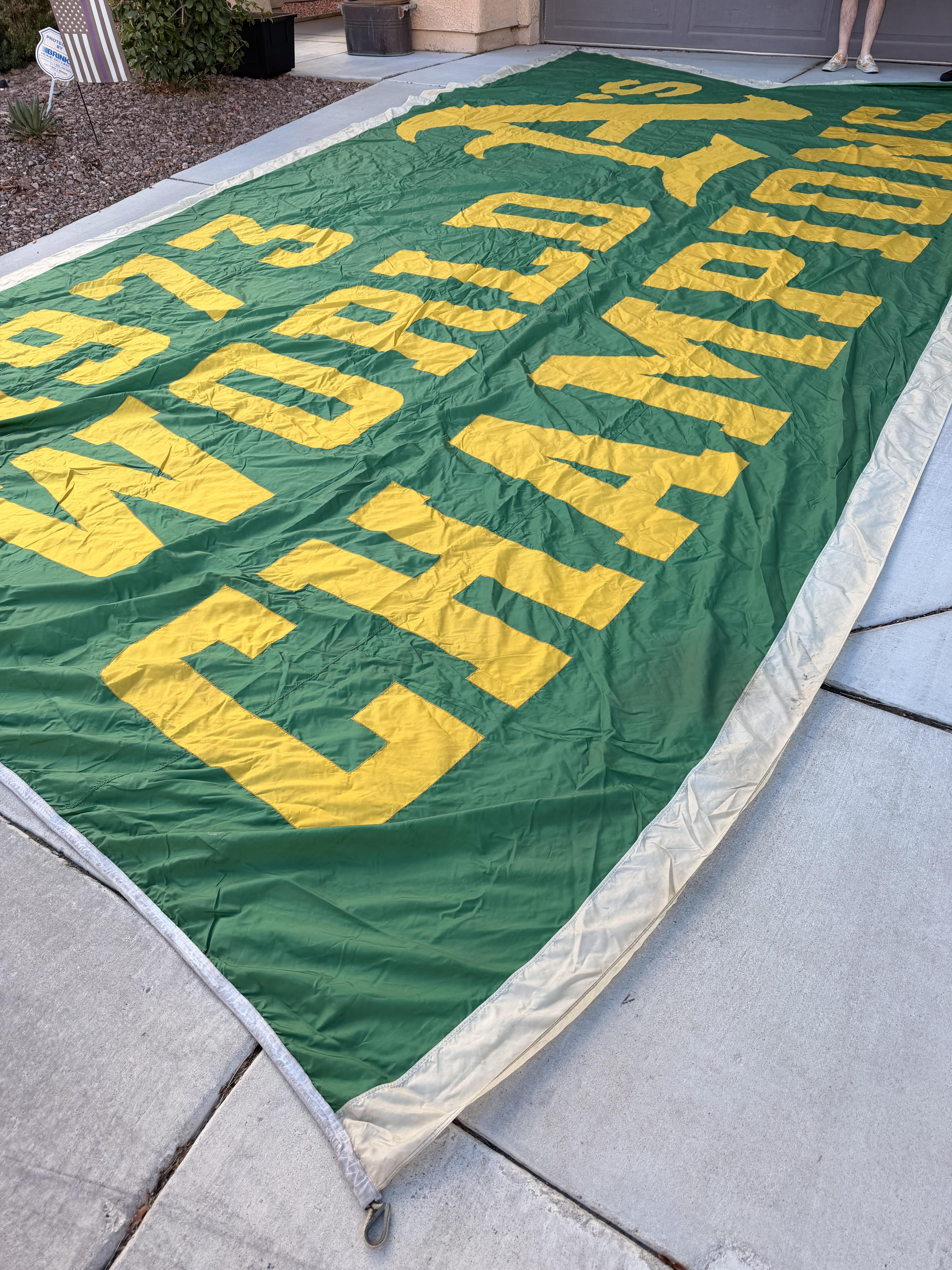 Don’t ask me how, but my dad was able to get this World Series flag that used to hang at the coliseum from the 80s I believe for me for Christmas. That it was pretty neat enough to post in here haha