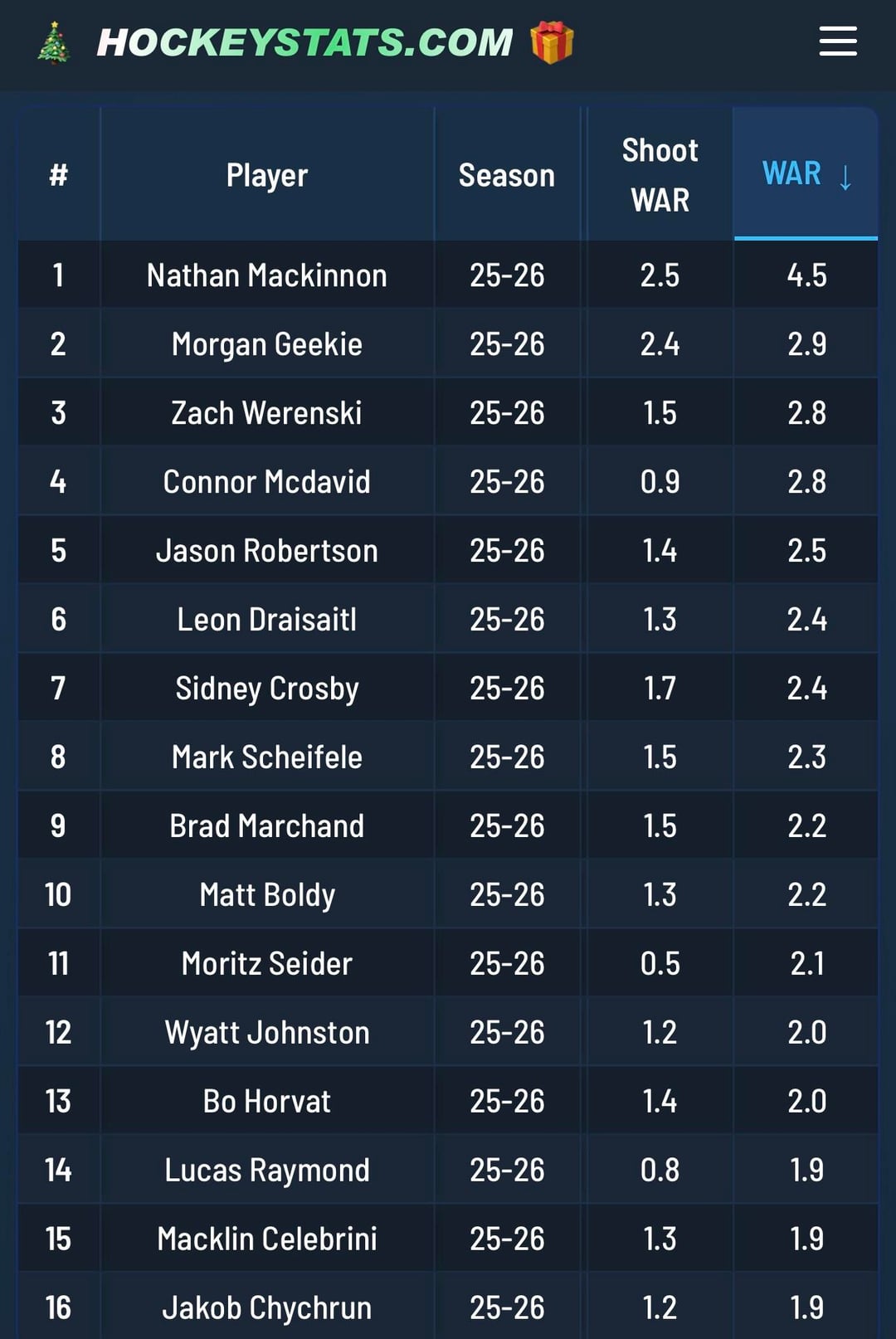 Crosby is 7th in Wins Above Replacement, according to JFresh / TopDownHockey