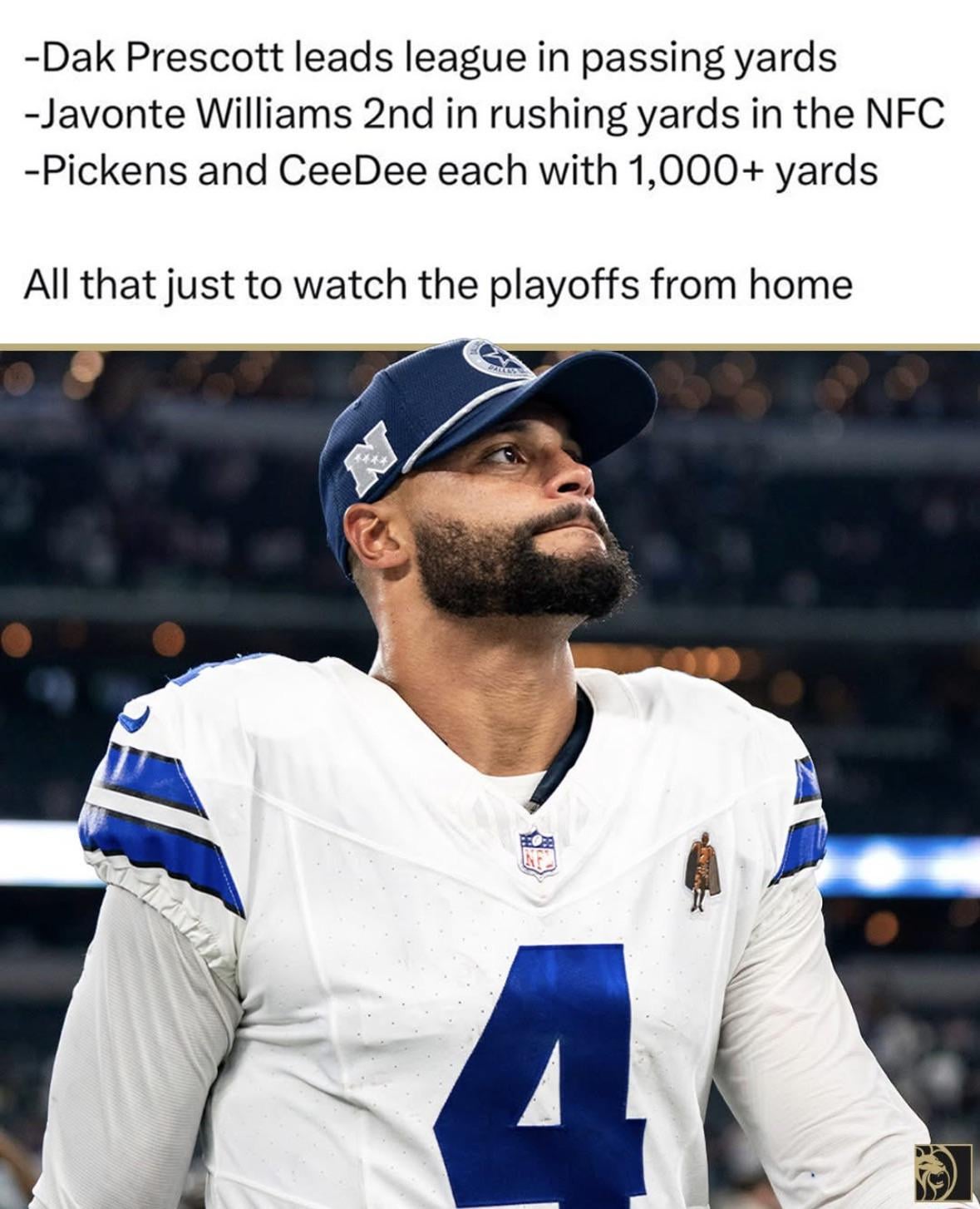 Sad π’ the defense played like we have 8 men on the field all season long; with two of them with their eyes closed during pass plays (smh). Congratulations to Dak for giving his best all games.
