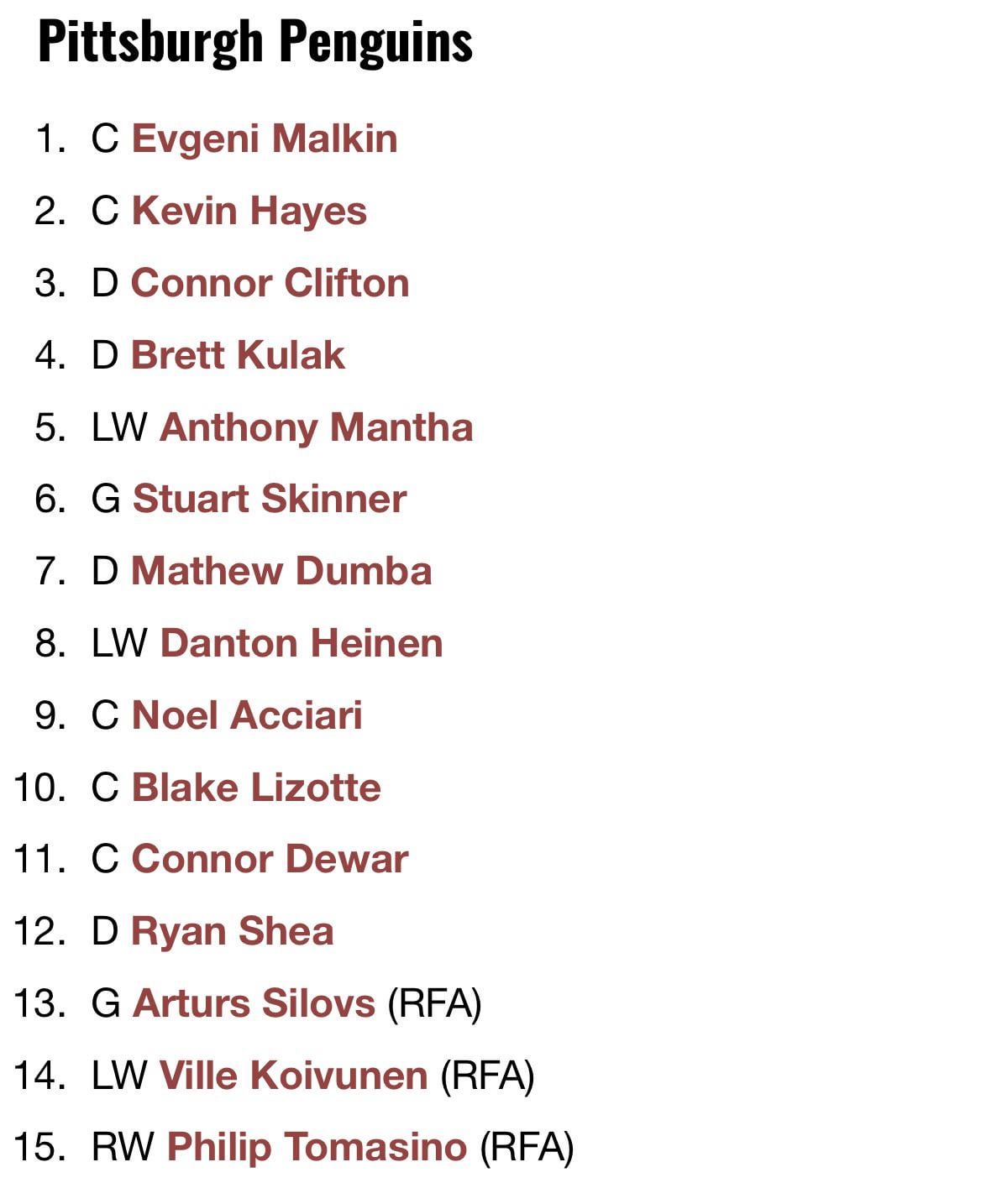 Malkin is pretty much the only one. Koivunen and Silovs will be brought back the rest really don’t matter. Lizottes a good 4C but I’d think he might want to go to a good team.