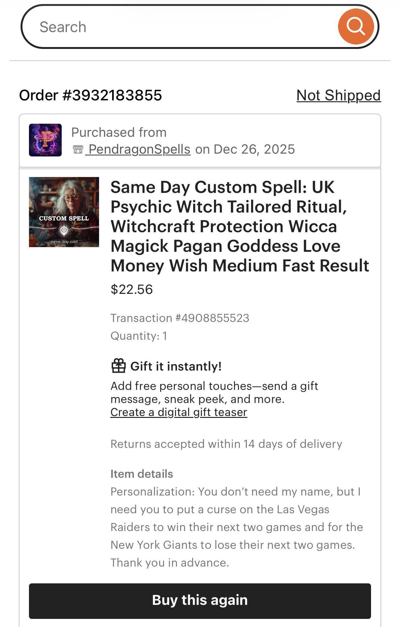 I literally just came here and searched “etsy” to see if anyone hired a witch after learning someone from the Raiders side did. Not all heroes wear capes sir 🫡