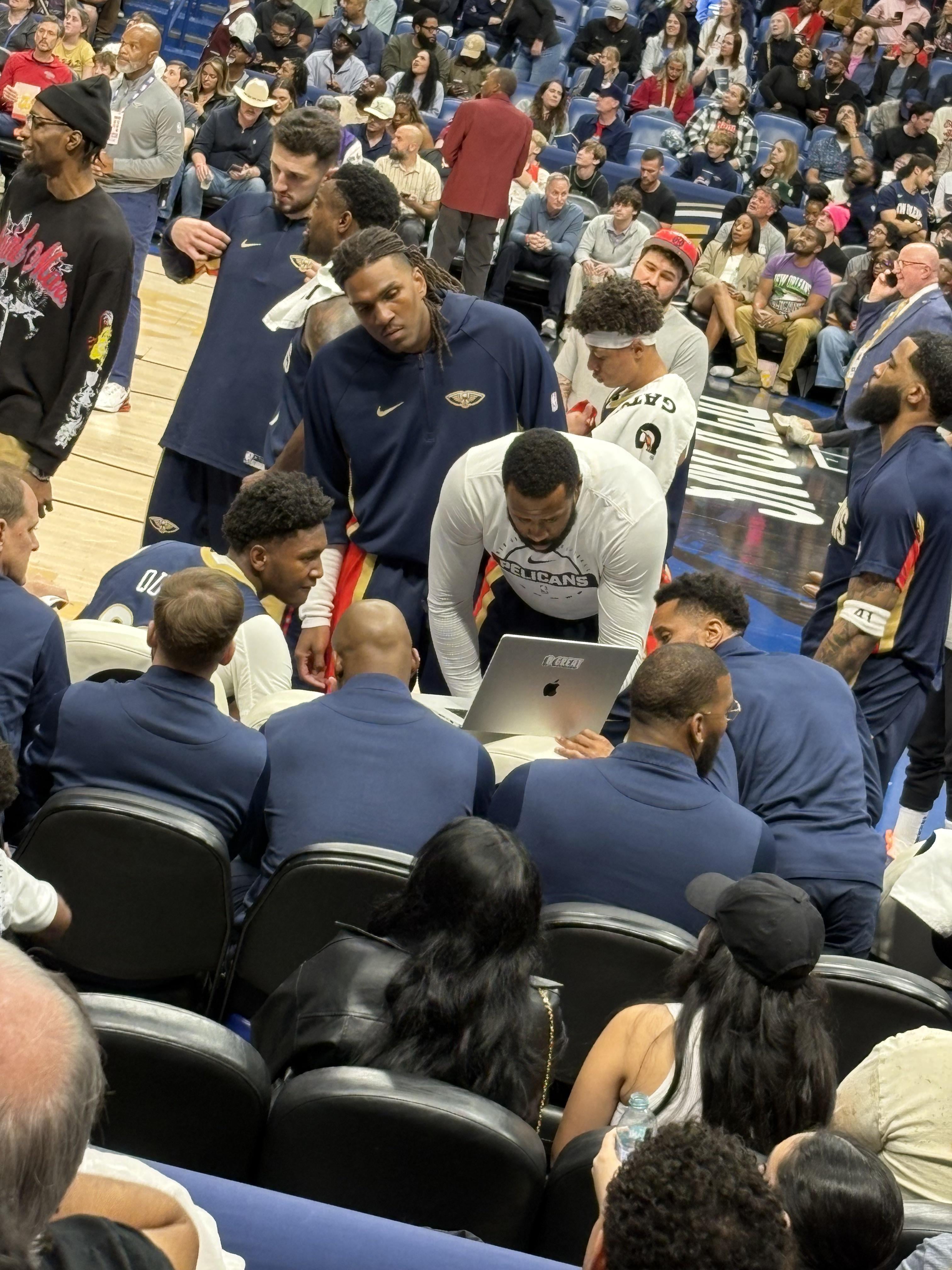 I posted in the post game thread, but this is the pic I took at the game today. It was really awesome to see. All game DJ was coaching up DQ. This time, he called him over, grabbed the laptop, and was telling him everything. And DQ was definitely listening and respecting him.