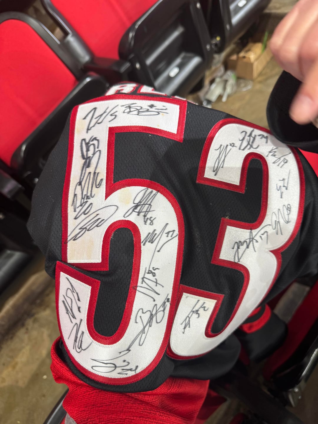 luckily the numbers don’t look too stained, probably scrub them with a damp towel being careful not to scrub the numbers, and as long as none of those signatures came from tonight then you should be good to wash on delicate and hang dry. make sure to turn the jersey inside out when washing