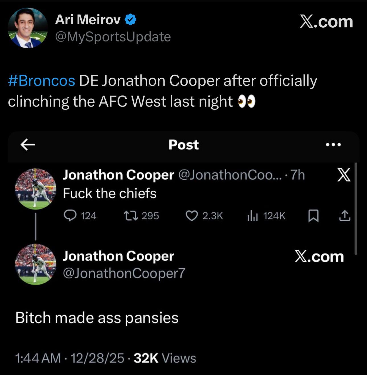[Ari Meirov] #Broncos DE Jonathon Cooper after officially clinching the AFC West last night 👀