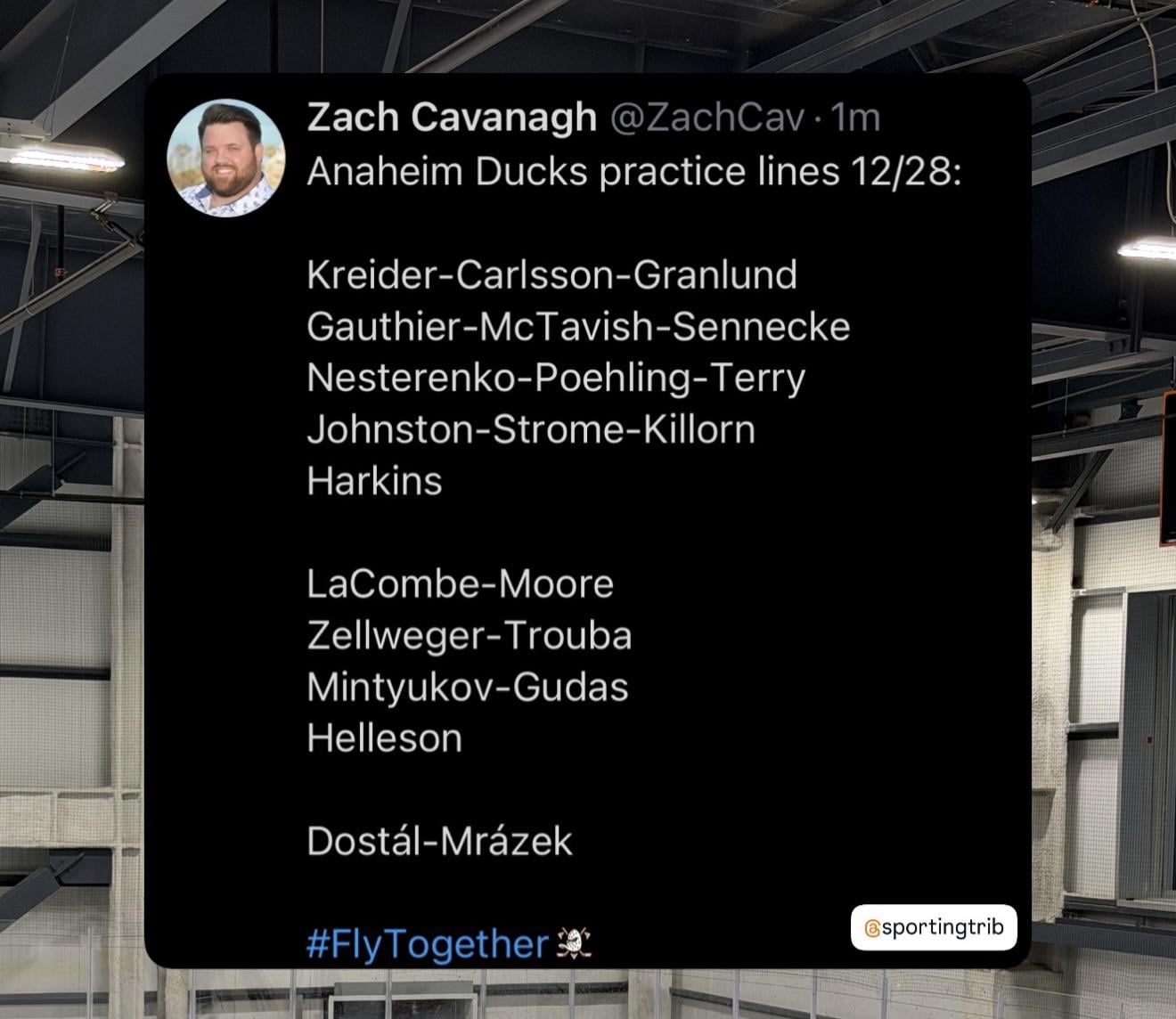 Major line and defensive pairing shakeups in practice today. Helleson looks to be the odd man out on D. Strome to 4th line C. Granlund to the 1st. Terry knocked down to the 3rd.