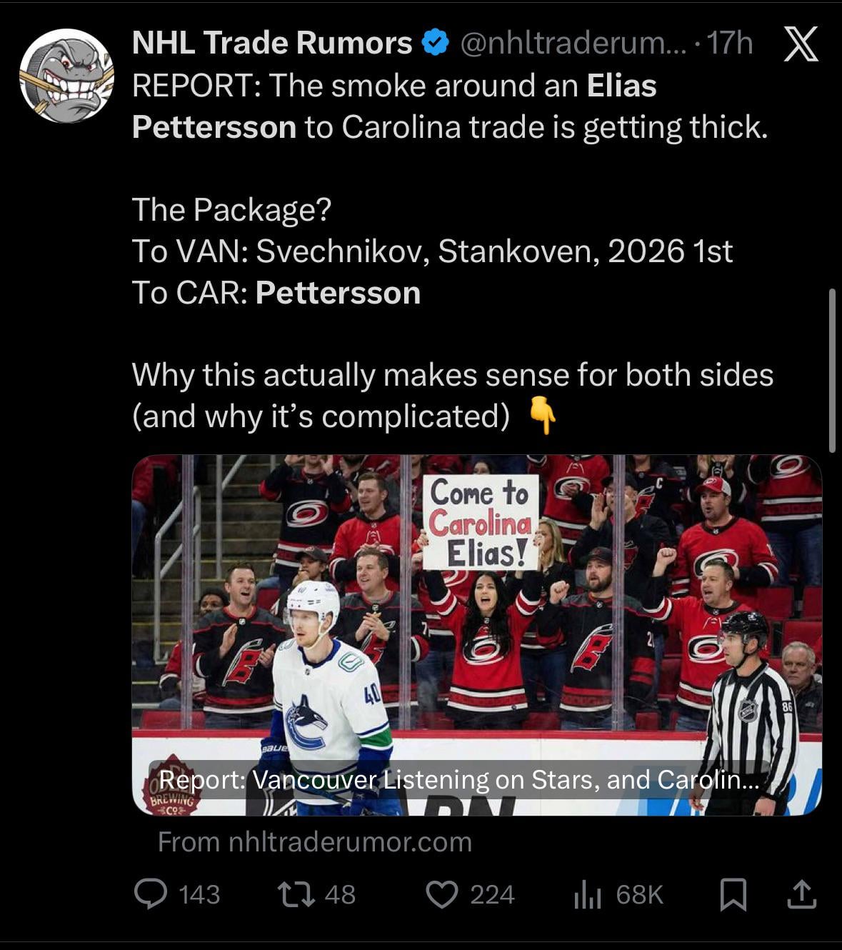 If we make this trade then I might not be a Canes fan anymore. Thank God this is pretty much just speculation.