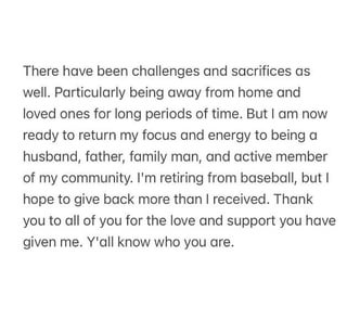 As a Rangers fan, I always appreciated his realism in his post-game interviews (which you can also see in this retirement message).