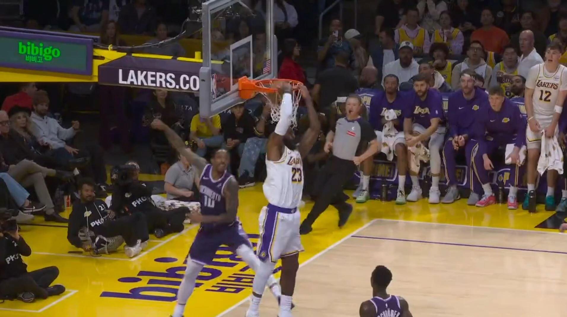 [Highlight] LeBron James with the absolutely sick reverse dunk off a pass by Luka Doncic (with replays). Lakers and Kings commentaries