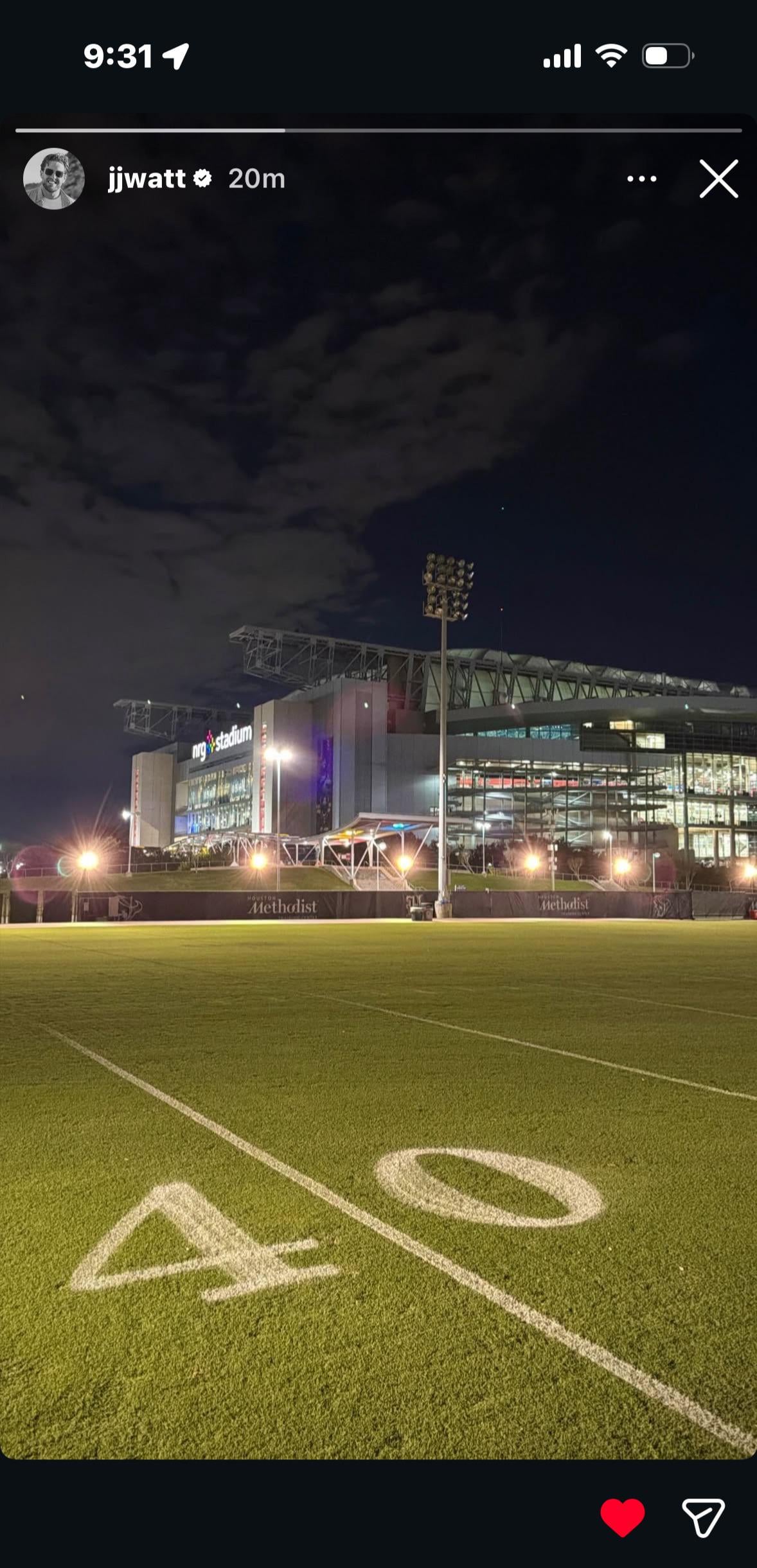 JJ just posted on insta that he’s at the NRG practice field. I wish he’d join the team for this playoff run. But he is likely just in town early because he’s calling the game this weekend.