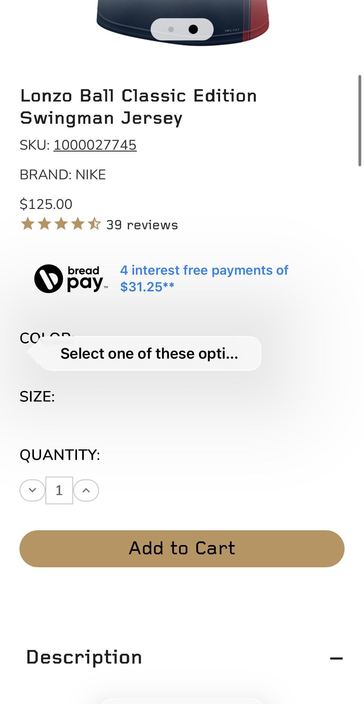 Look, trying to purchase a Lonzo Ball city jersey off of the shop but i cannot adjust the size or anything. Every time I try to “add to cart” that pop up appears and that’s it. Can anyone assist please🙏