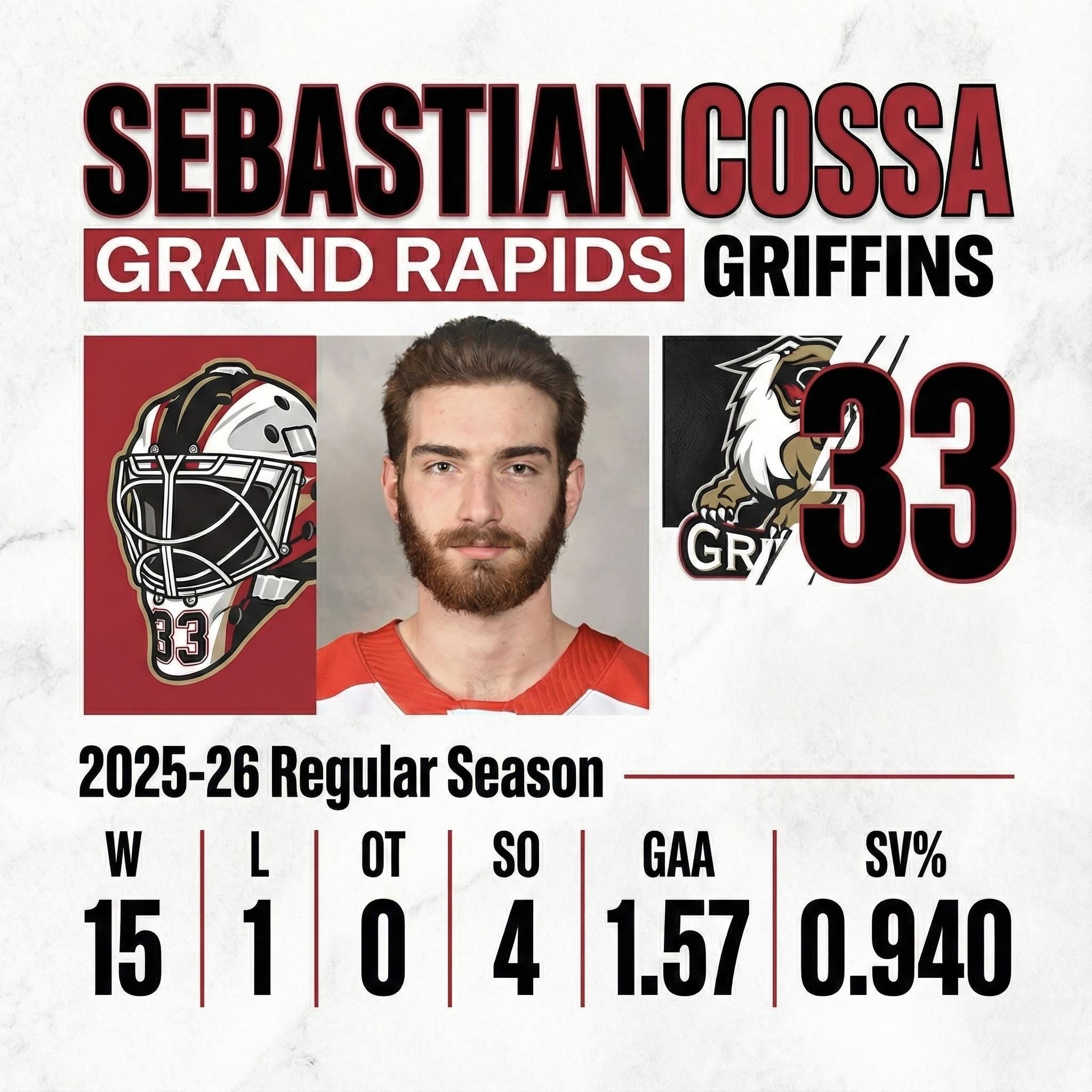 Cossa is having an extremely good season with Grand Rapids this year. He is currently the best goalie in the AHL stat wise.