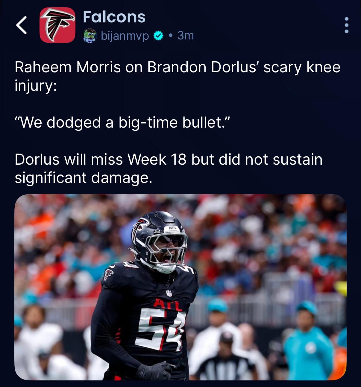 Brandon Dorlus will miss the team’s final game, but avoided any significant damage. Bless up!