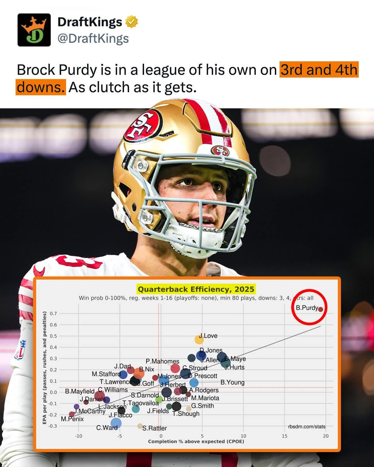 Also Purdy is leading the entire NFL in QBR, and #4 in passer rating.